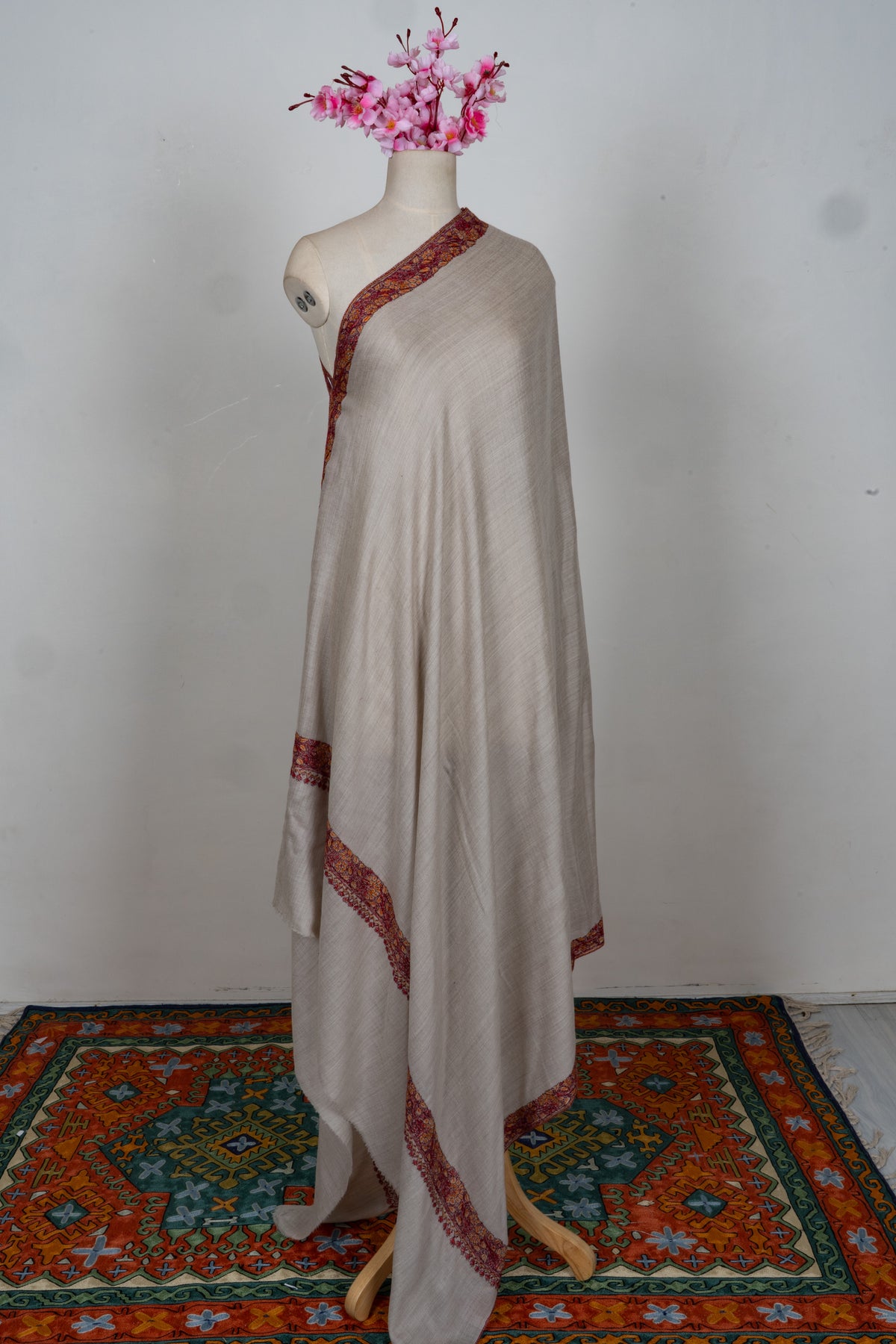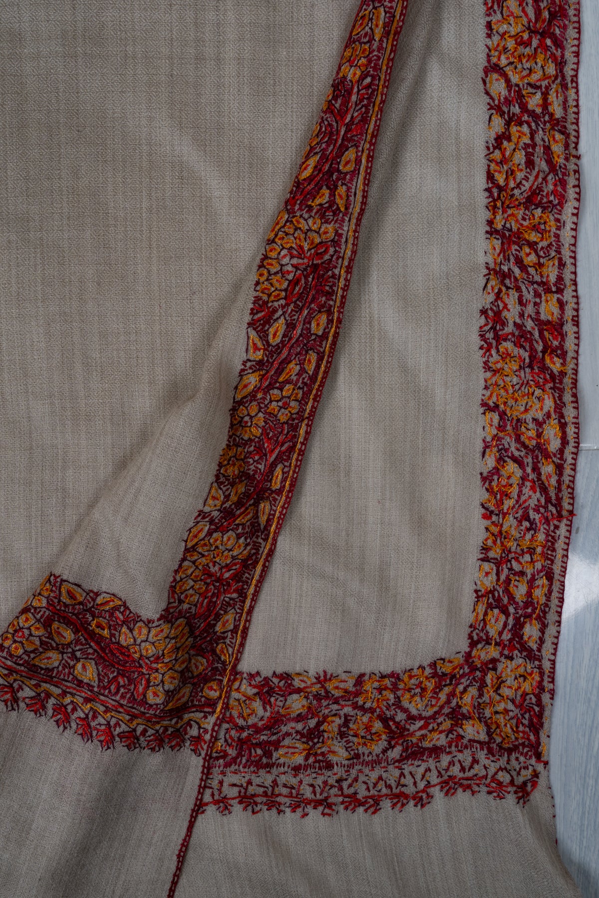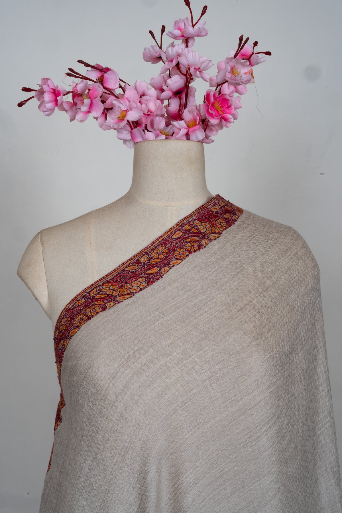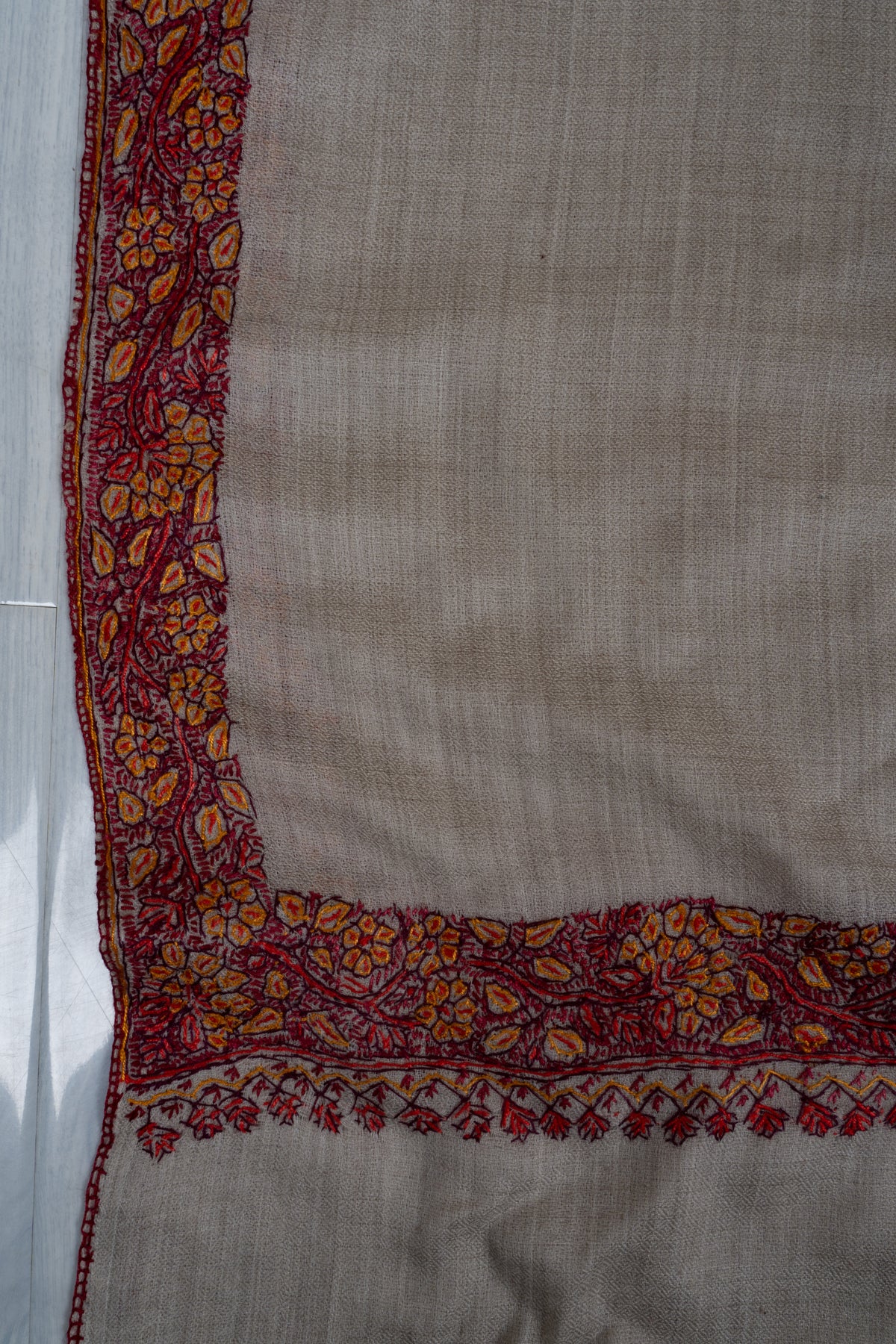 Almond Bloom Merino wool 2.5 Yards Sozni Hand Embroidered Shawl