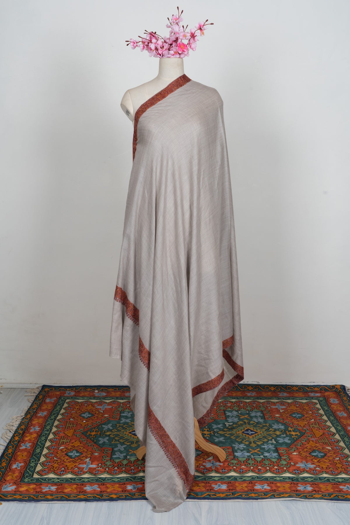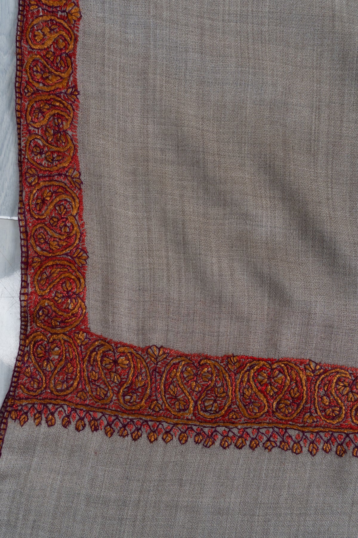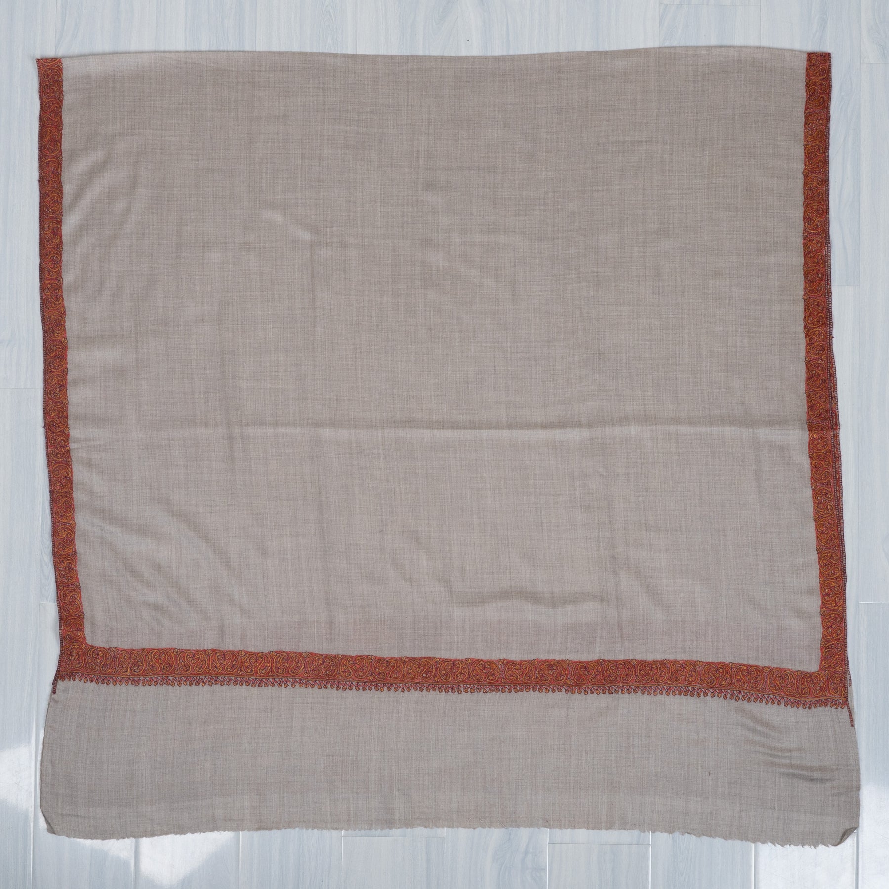 Classic Sand Ember Merino wool 2.5 Yards Sozni Hand Embroidered Shawl