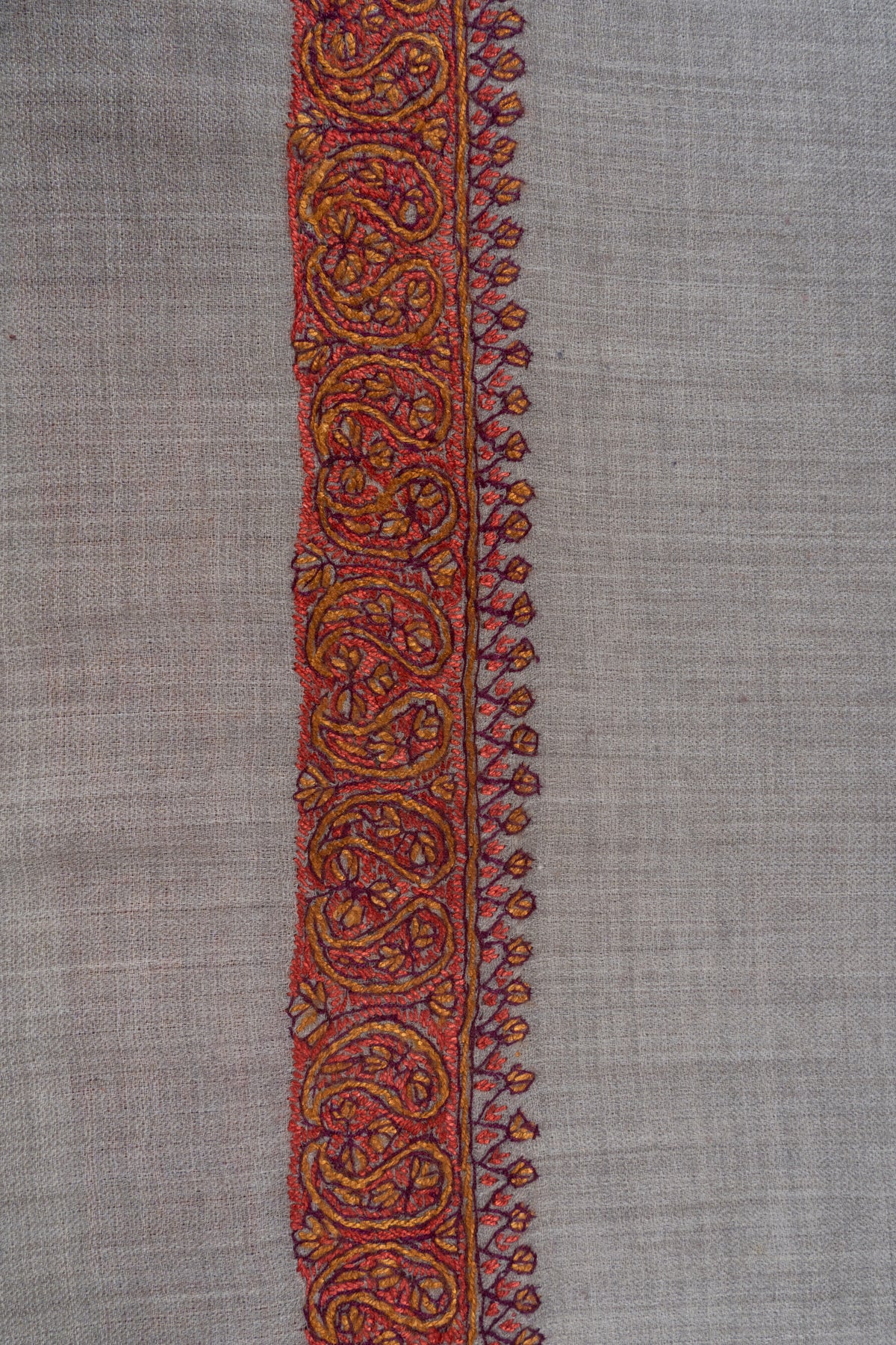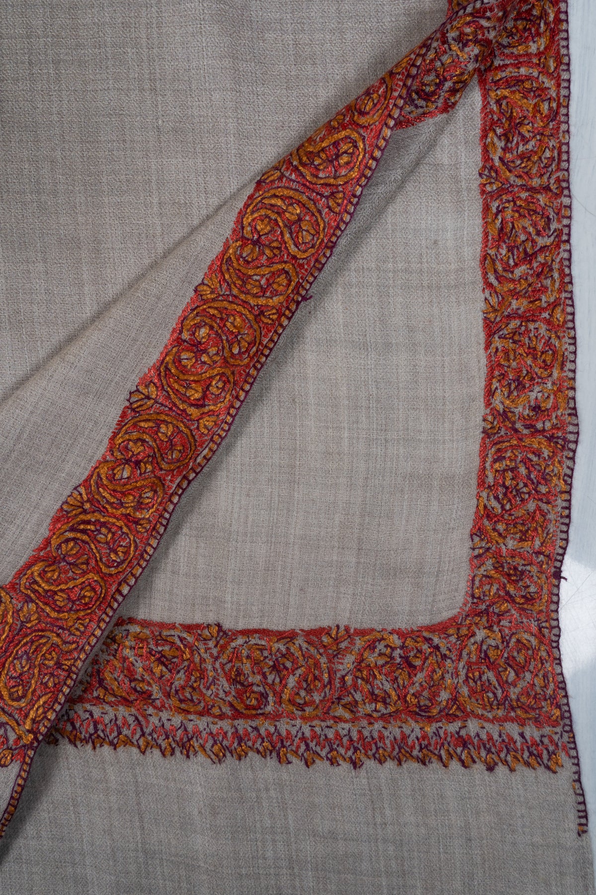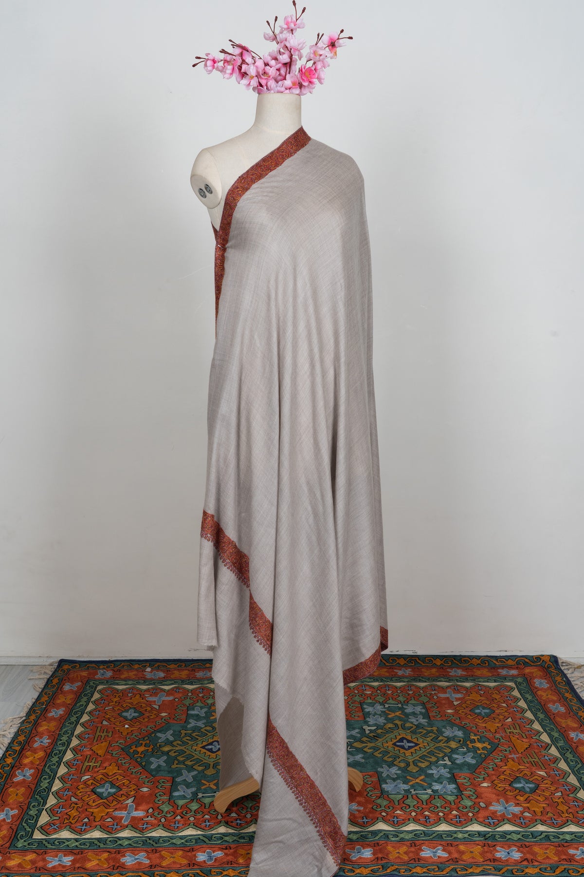 Classic Sand Ember Merino wool 2.5 Yards Sozni Hand Embroidered Shawl