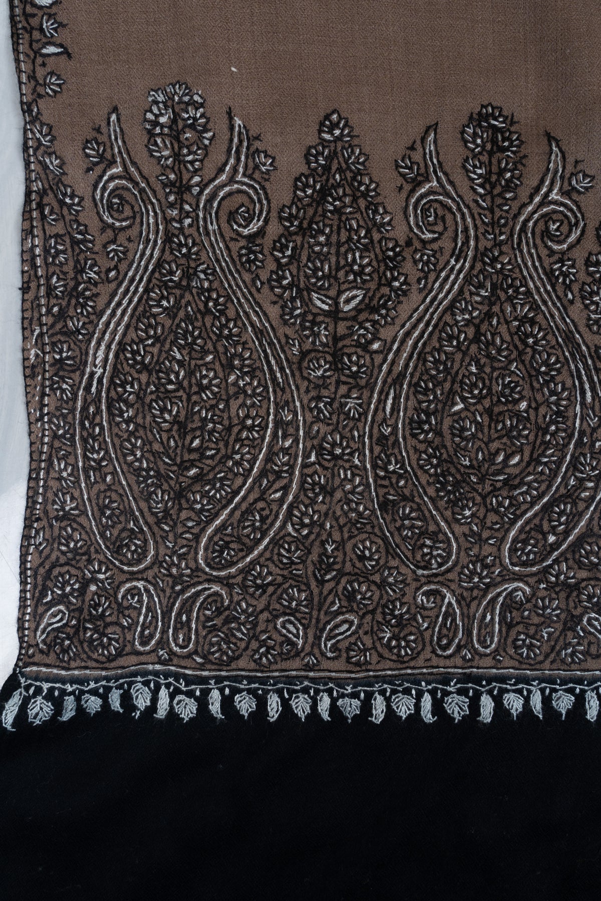 Desert Noir Paisley: Merino wool 2.5 Yards Sozni Hand Embroidered Shawl