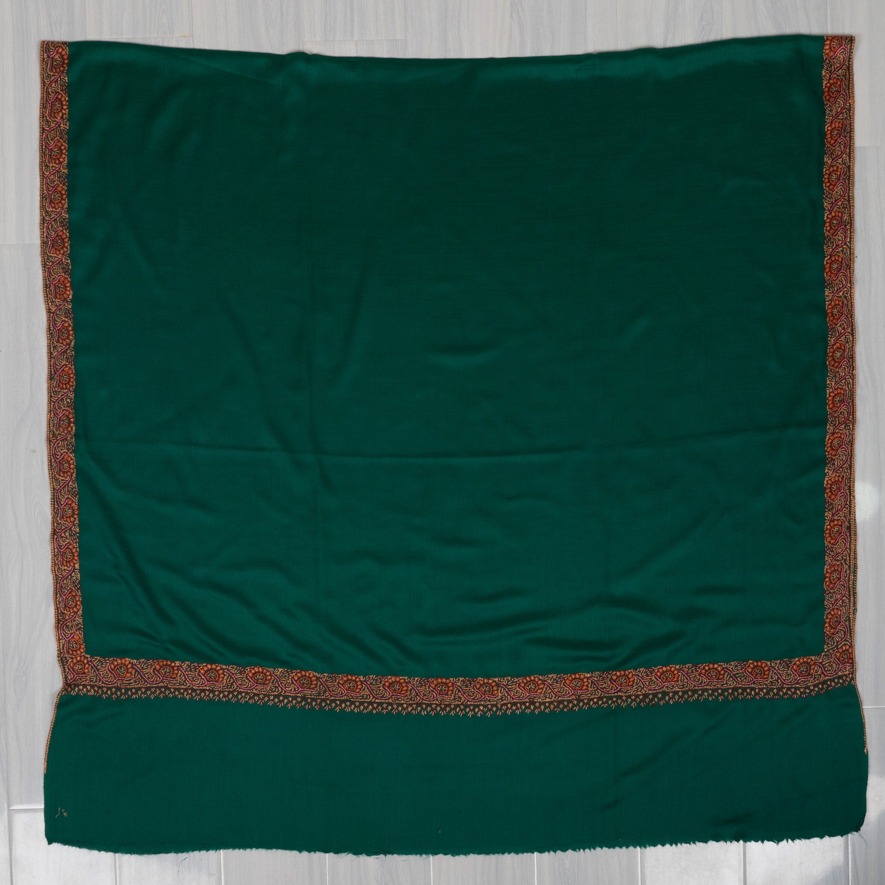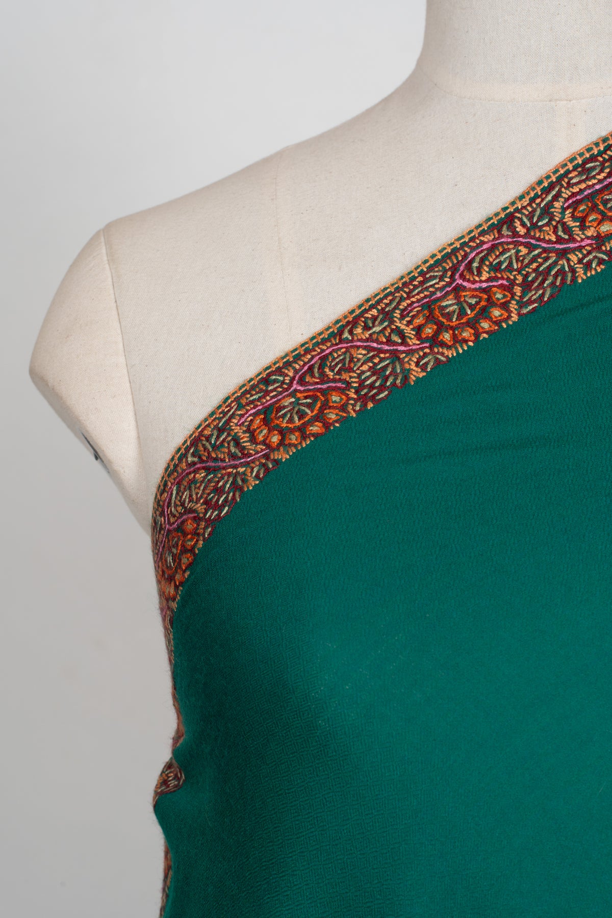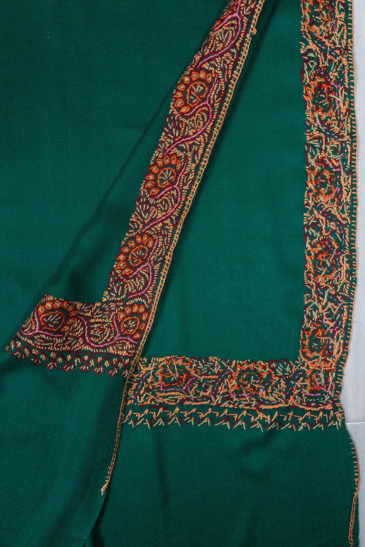 Emerald Court Classic: Merino wool 2.5 Yards Sozni Hand Embroidered Shawl