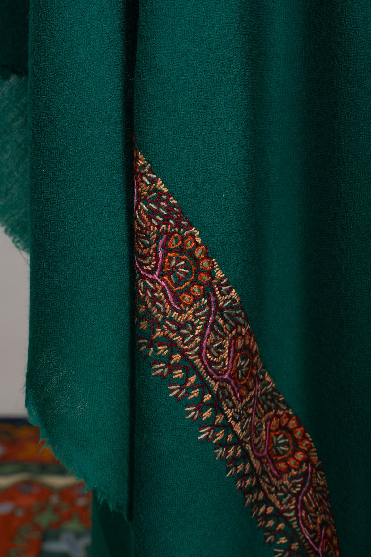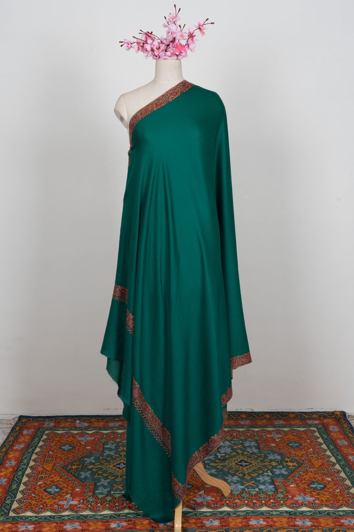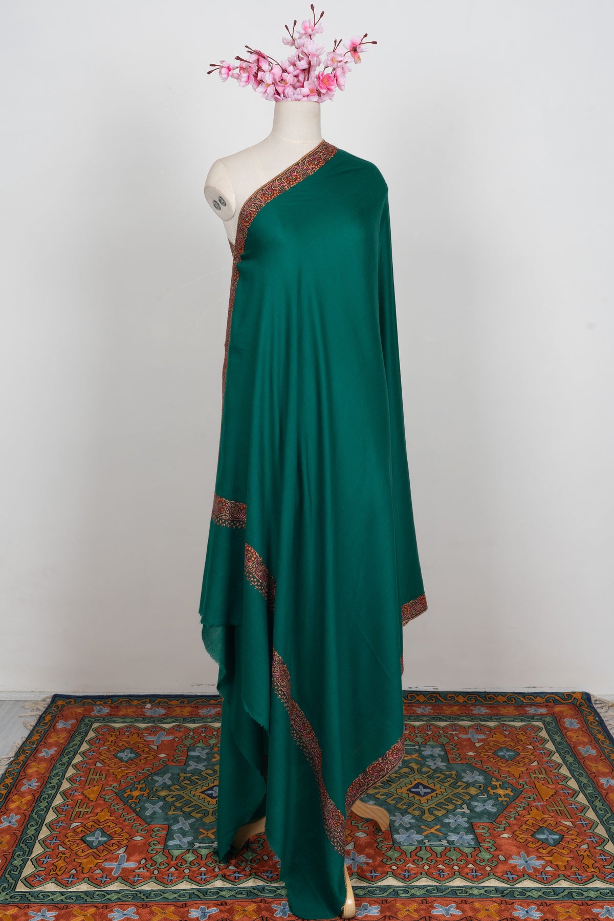 Emerald Court Classic: Merino wool 2.5 Yards Sozni Hand Embroidered Shawl