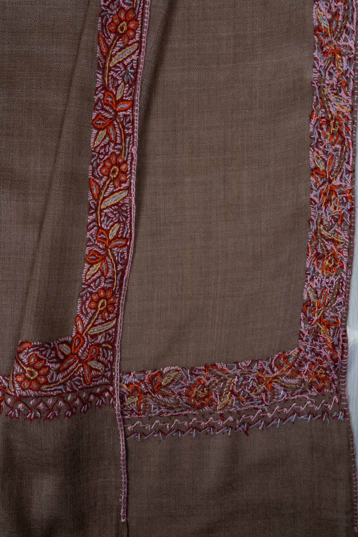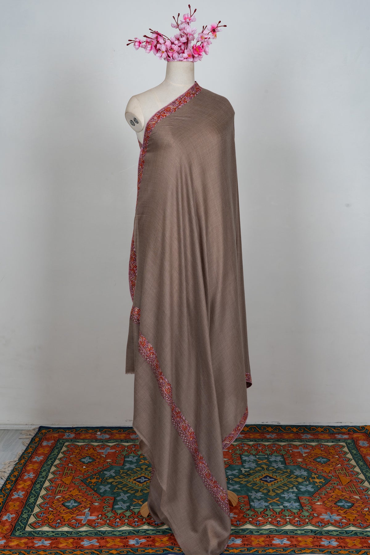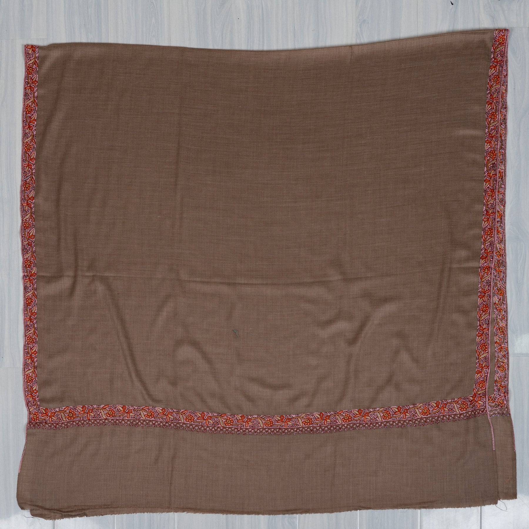 Sandstone Ember Edge: Merino wool 2.5 Yards Sozni Hand Embroidered Shawl