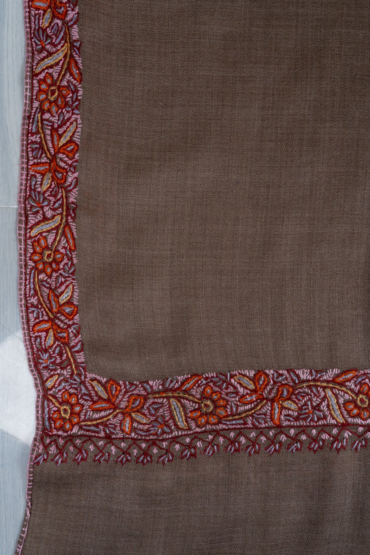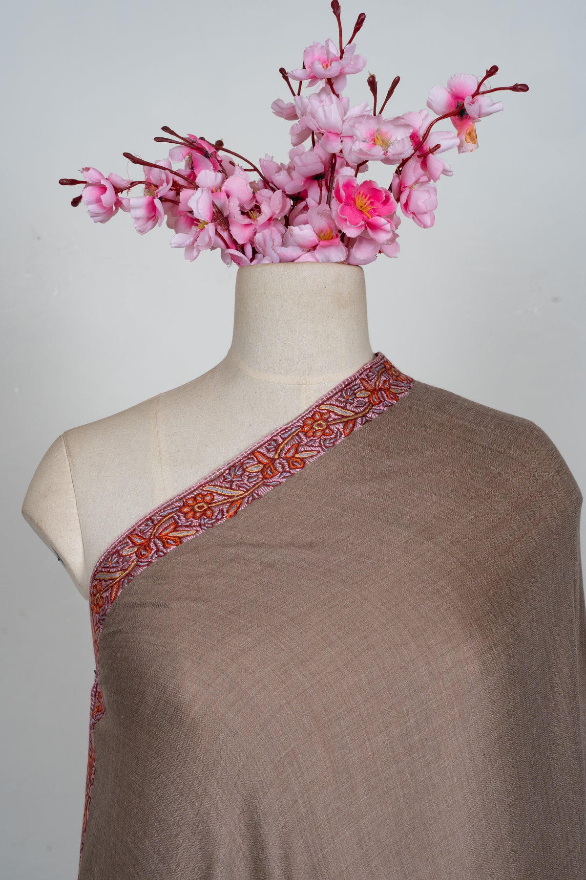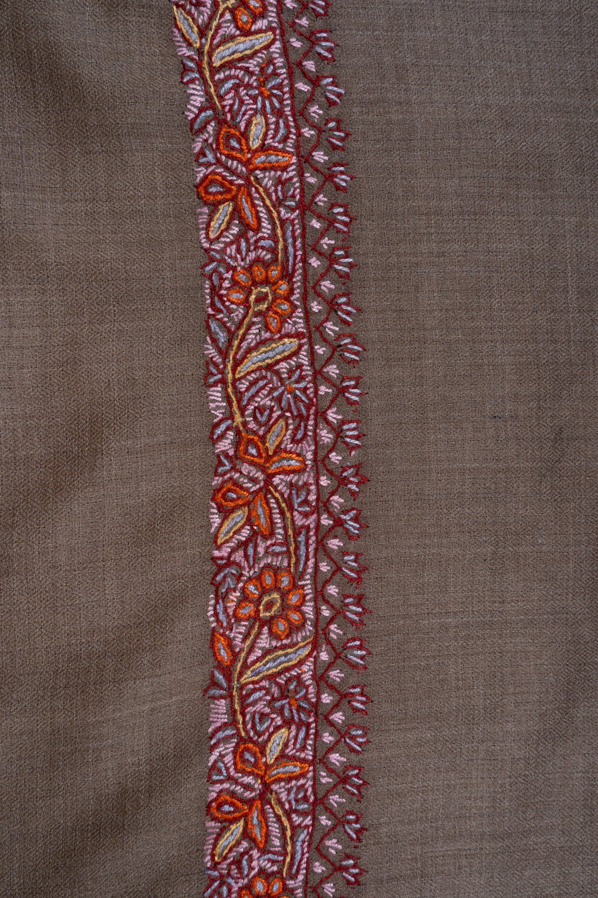 Sandstone Ember Edge: Merino wool 2.5 Yards Sozni Hand Embroidered Shawl