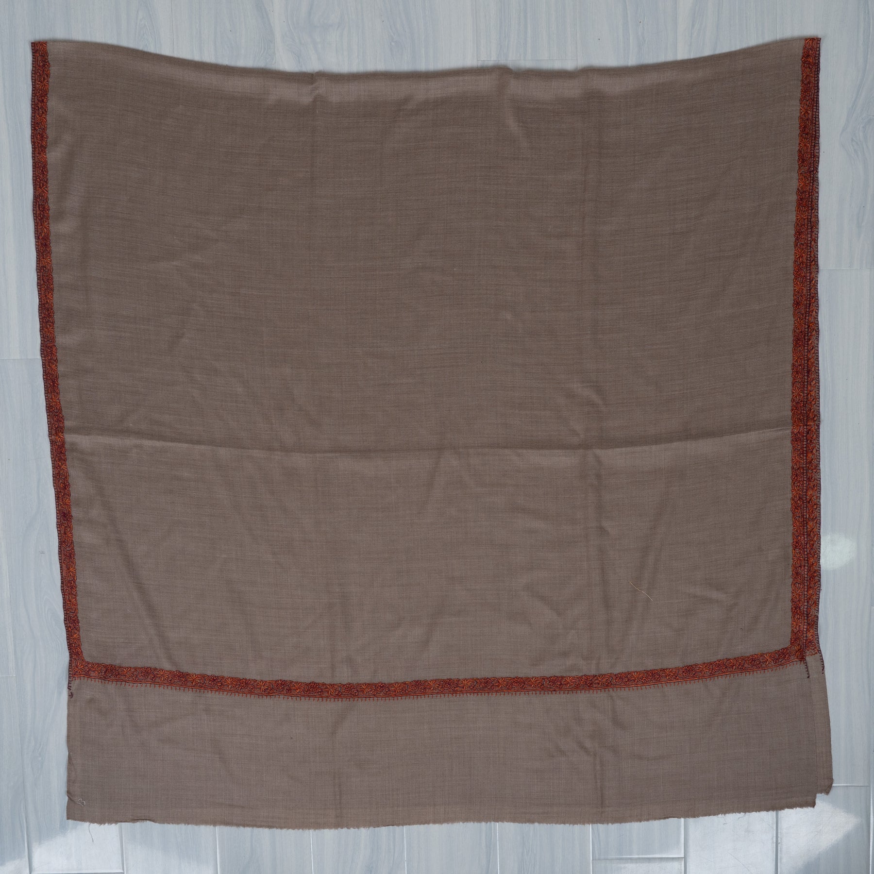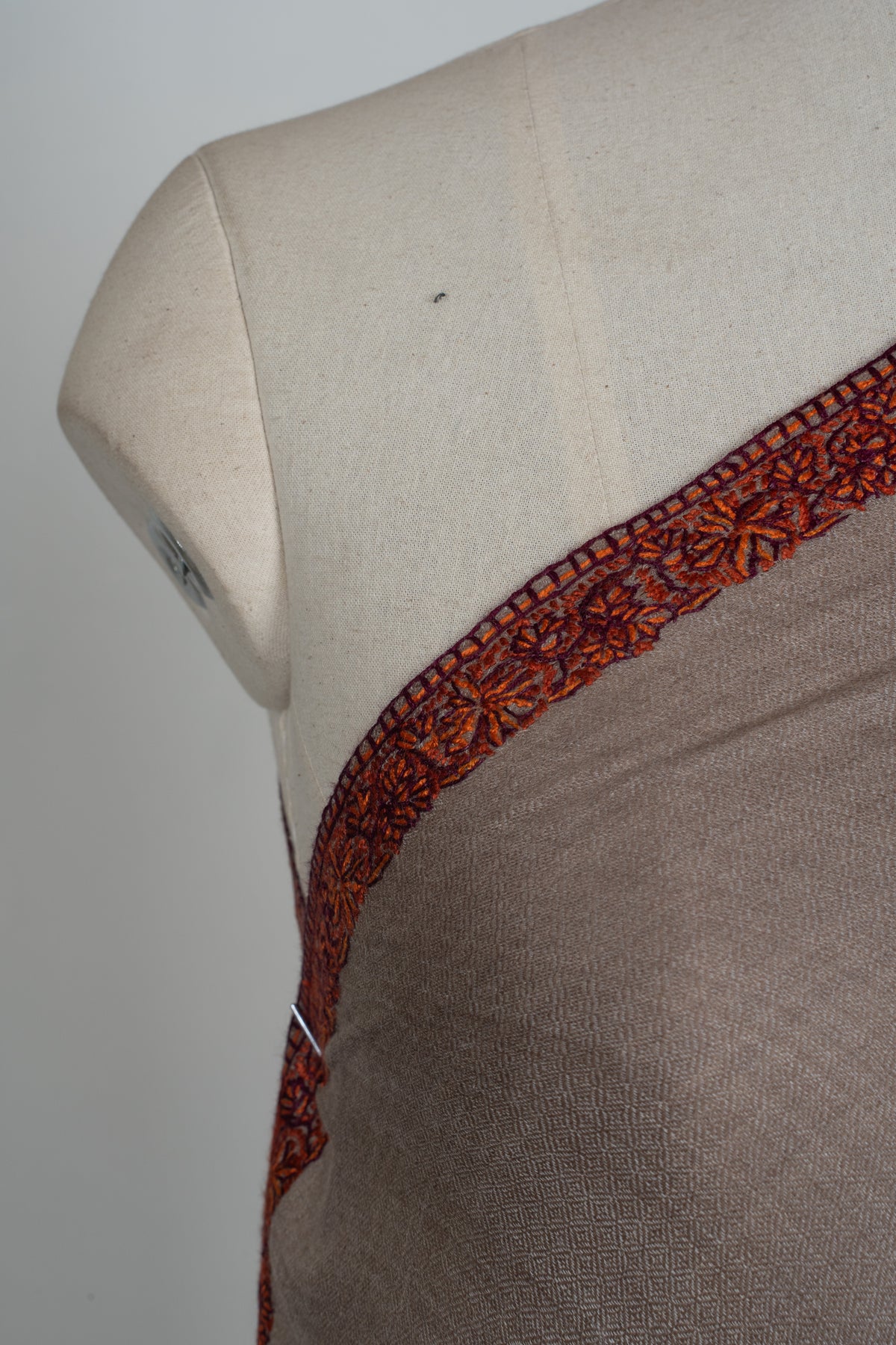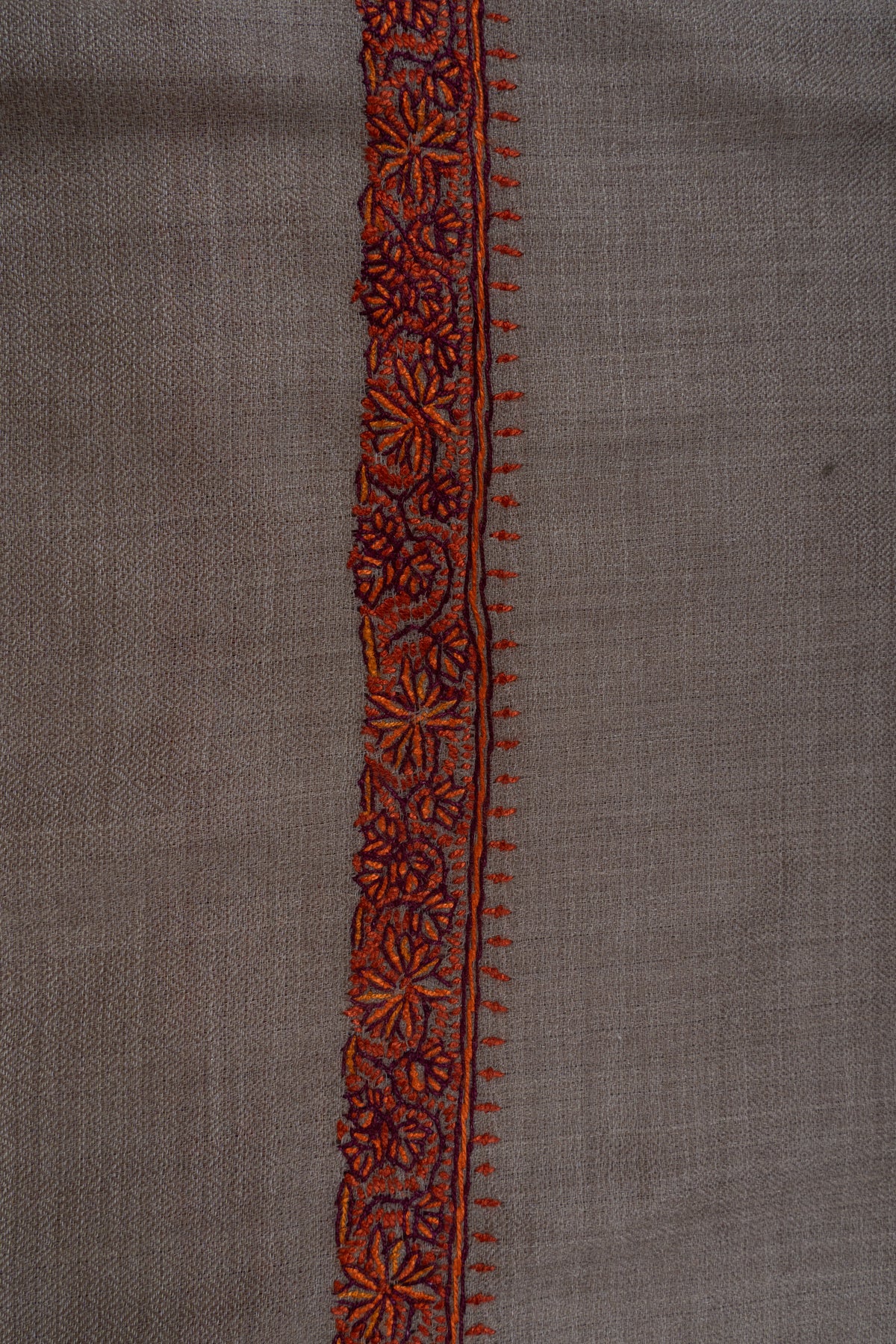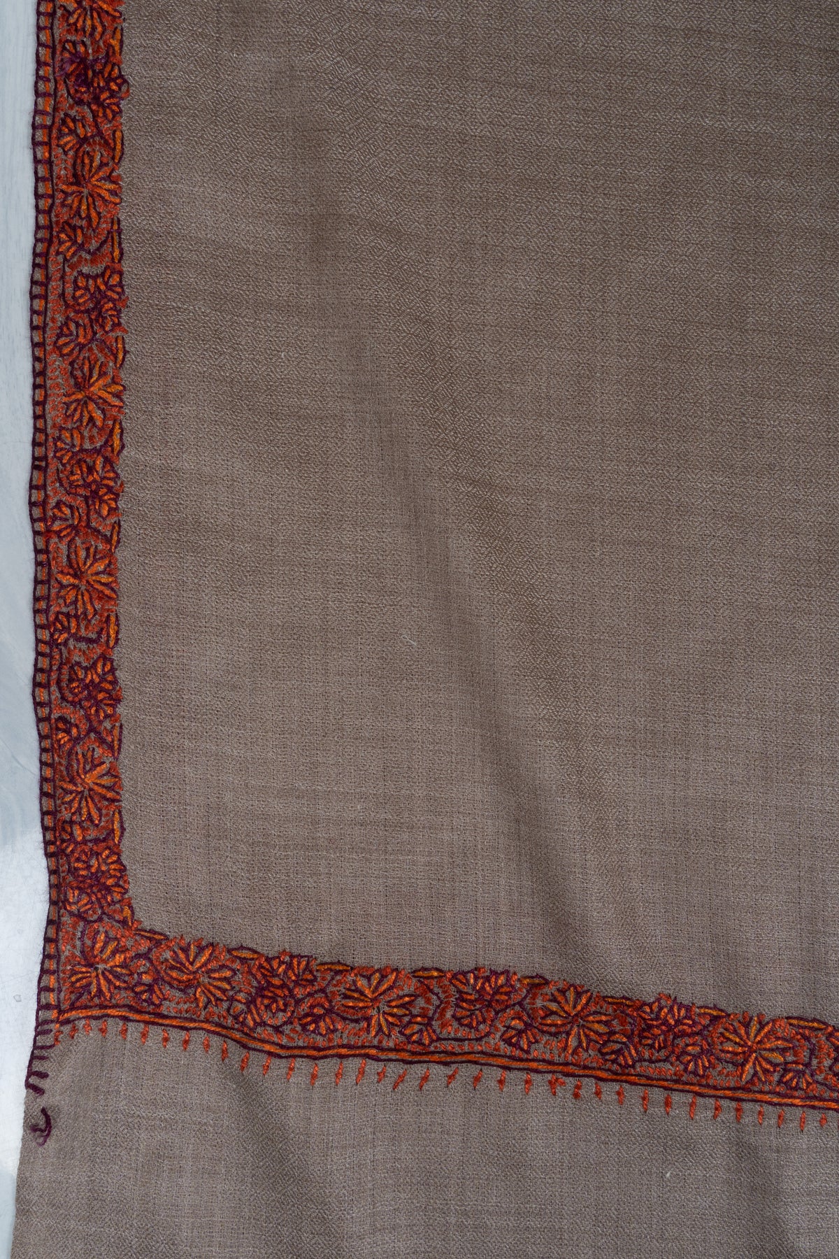 Warm Mocha Merino wool 2.5 Yards Sozni Hand Embroidered Shawl
