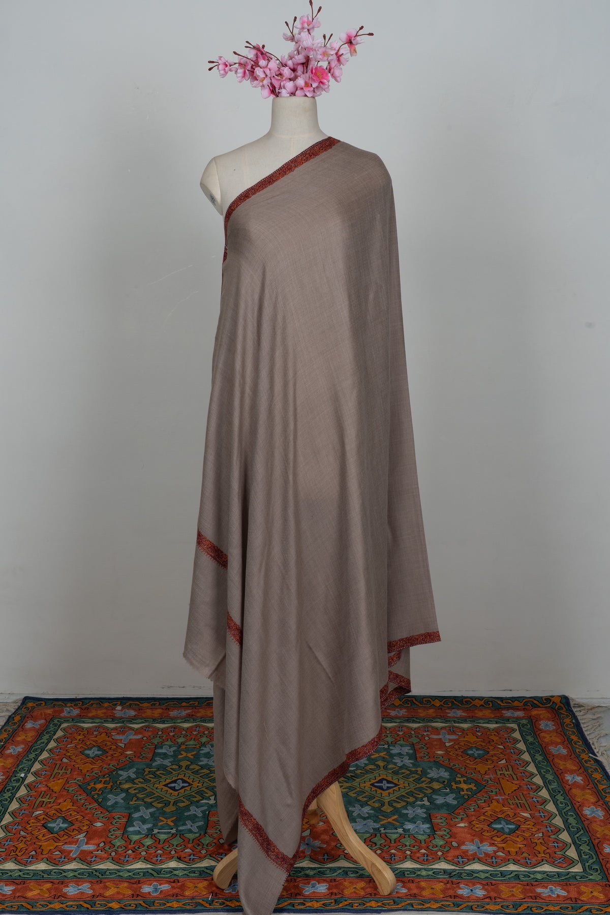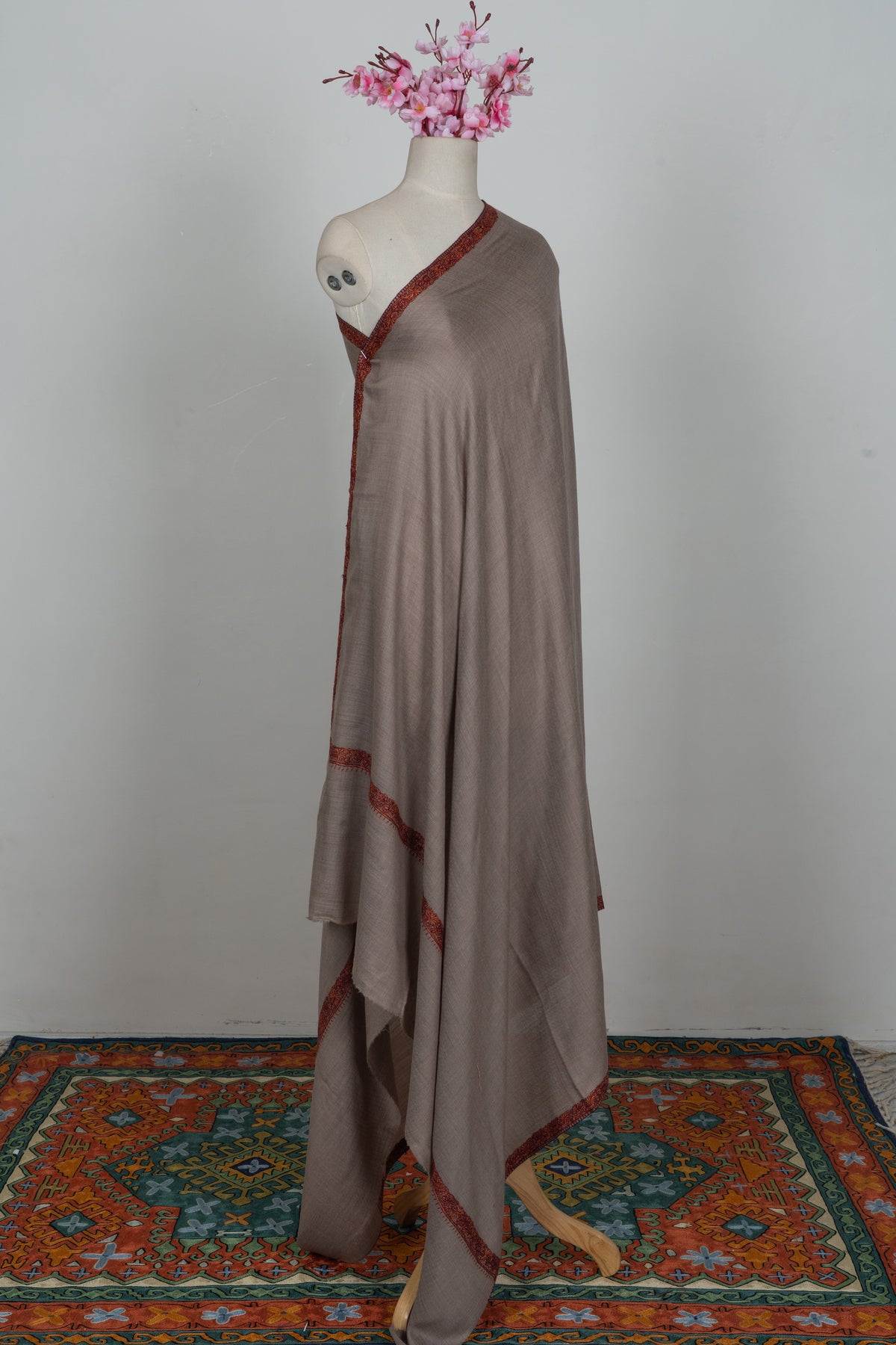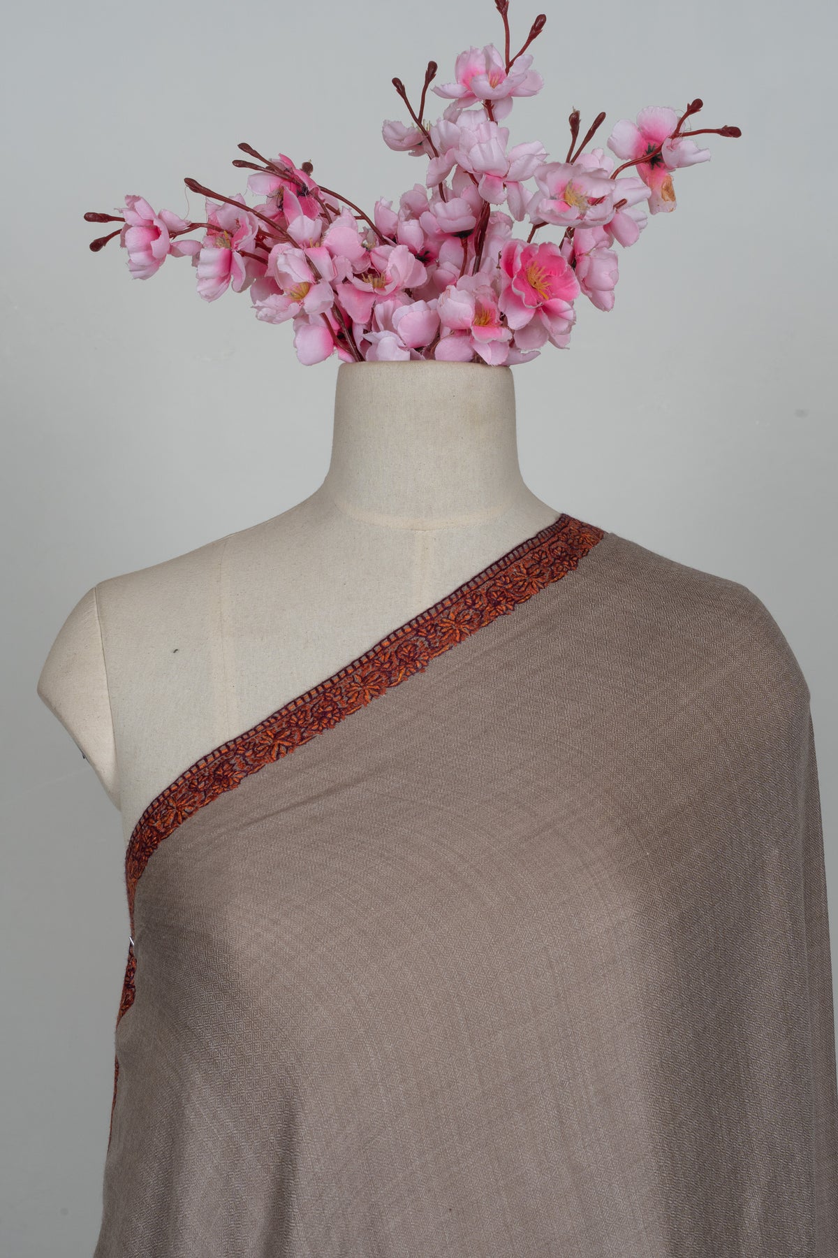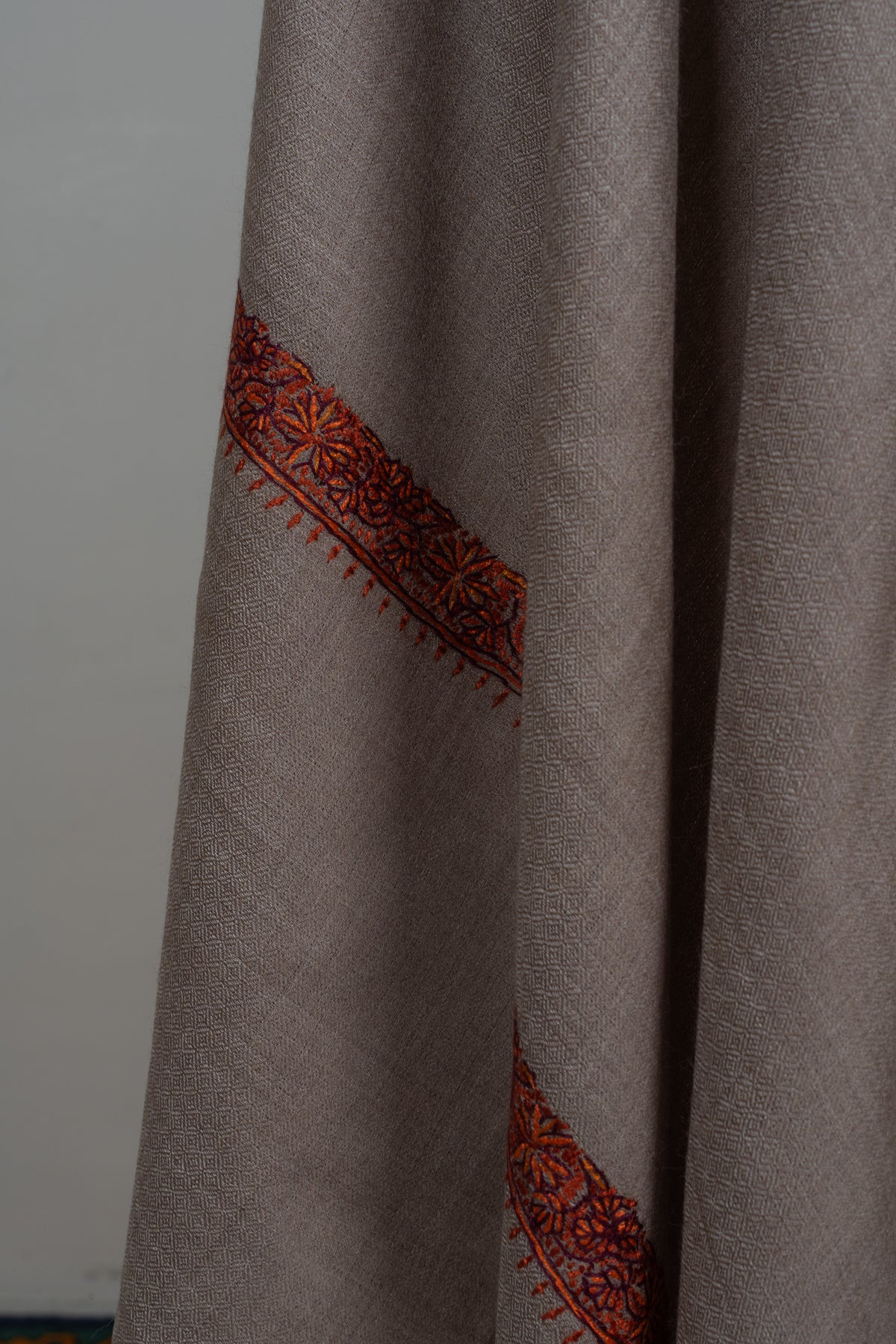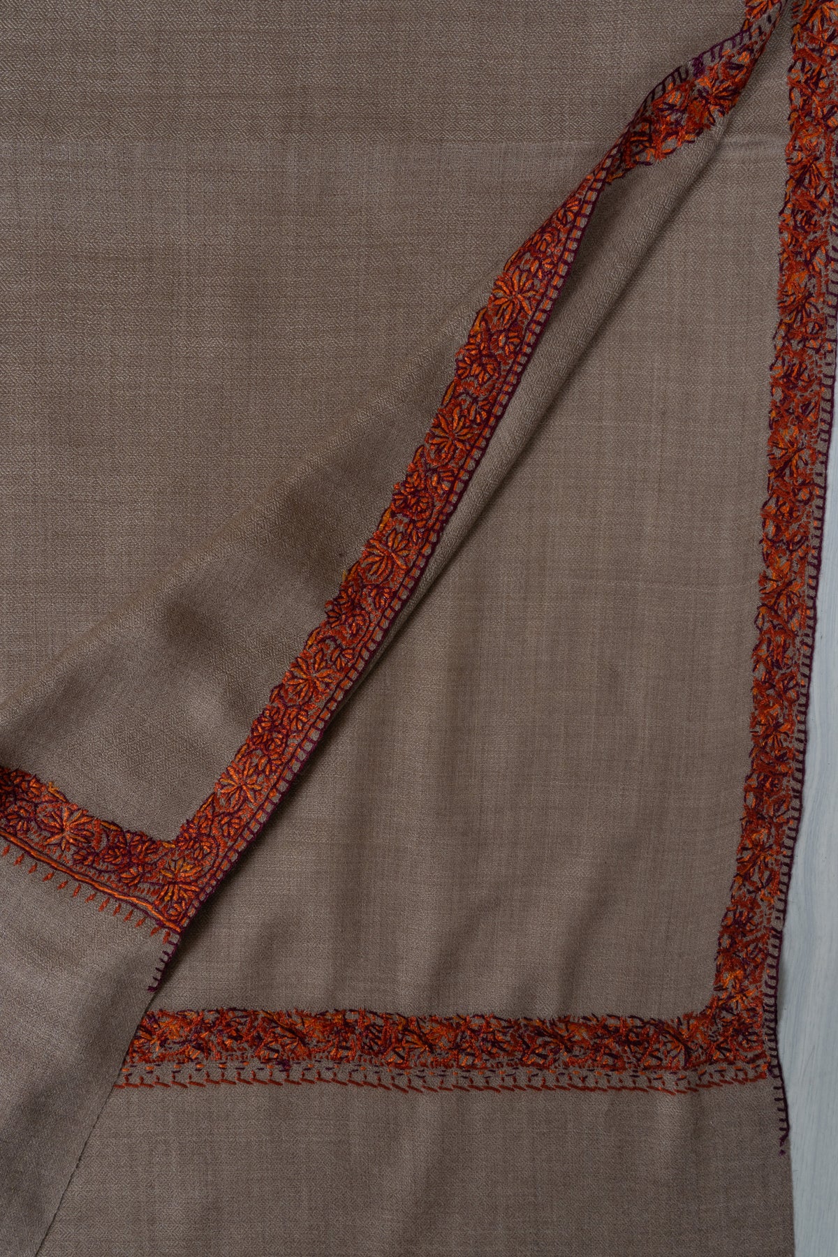 Warm Mocha Merino wool 2.5 Yards Sozni Hand Embroidered Shawl