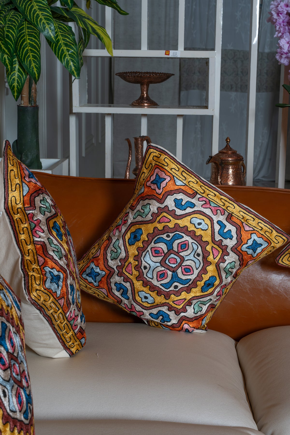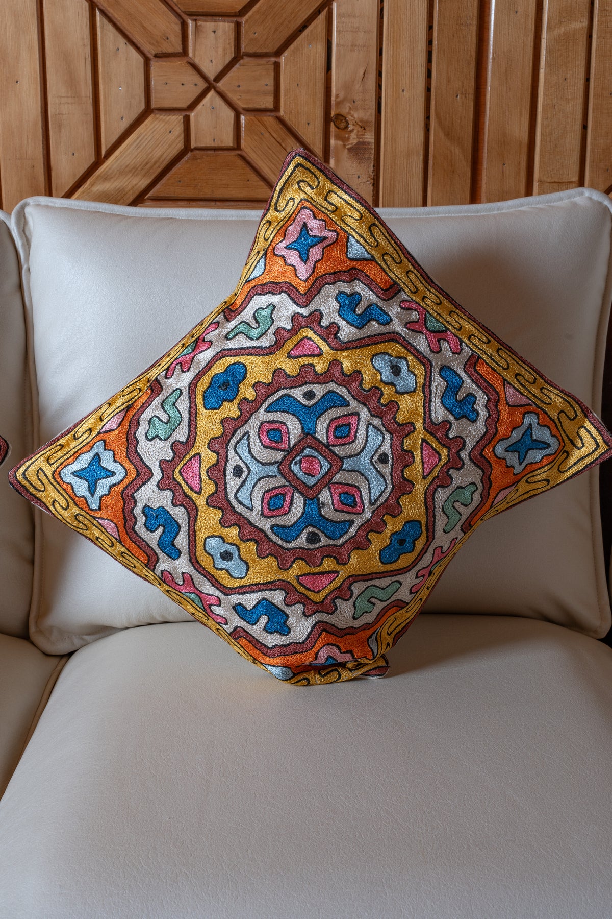 👐 Handcrafted with care, each cushion cover is Hand Embroidered by skilled Kashmiri artisans, reflecting refined craftsmanship.