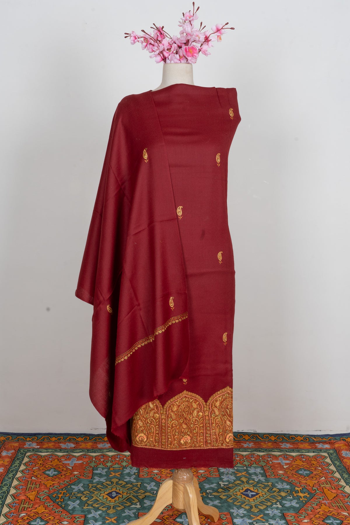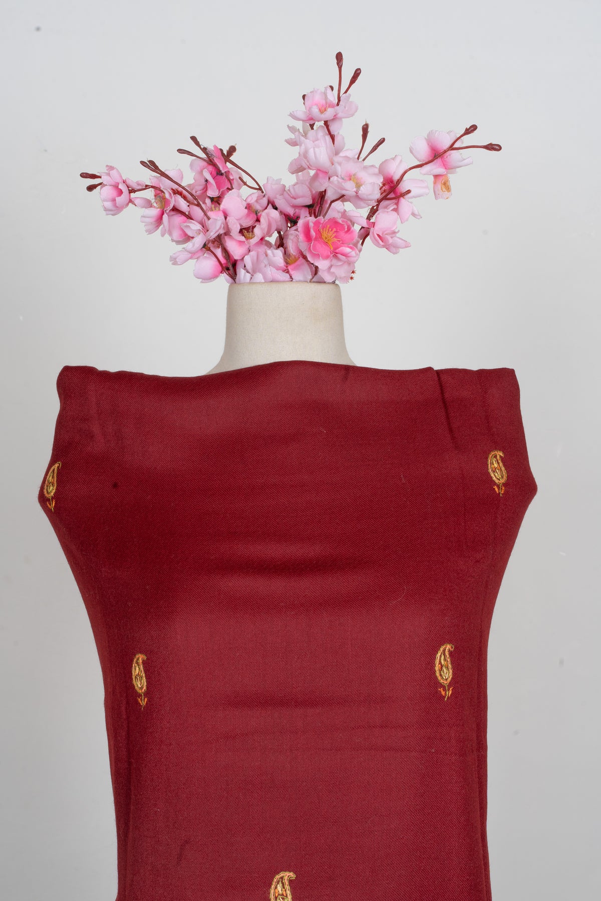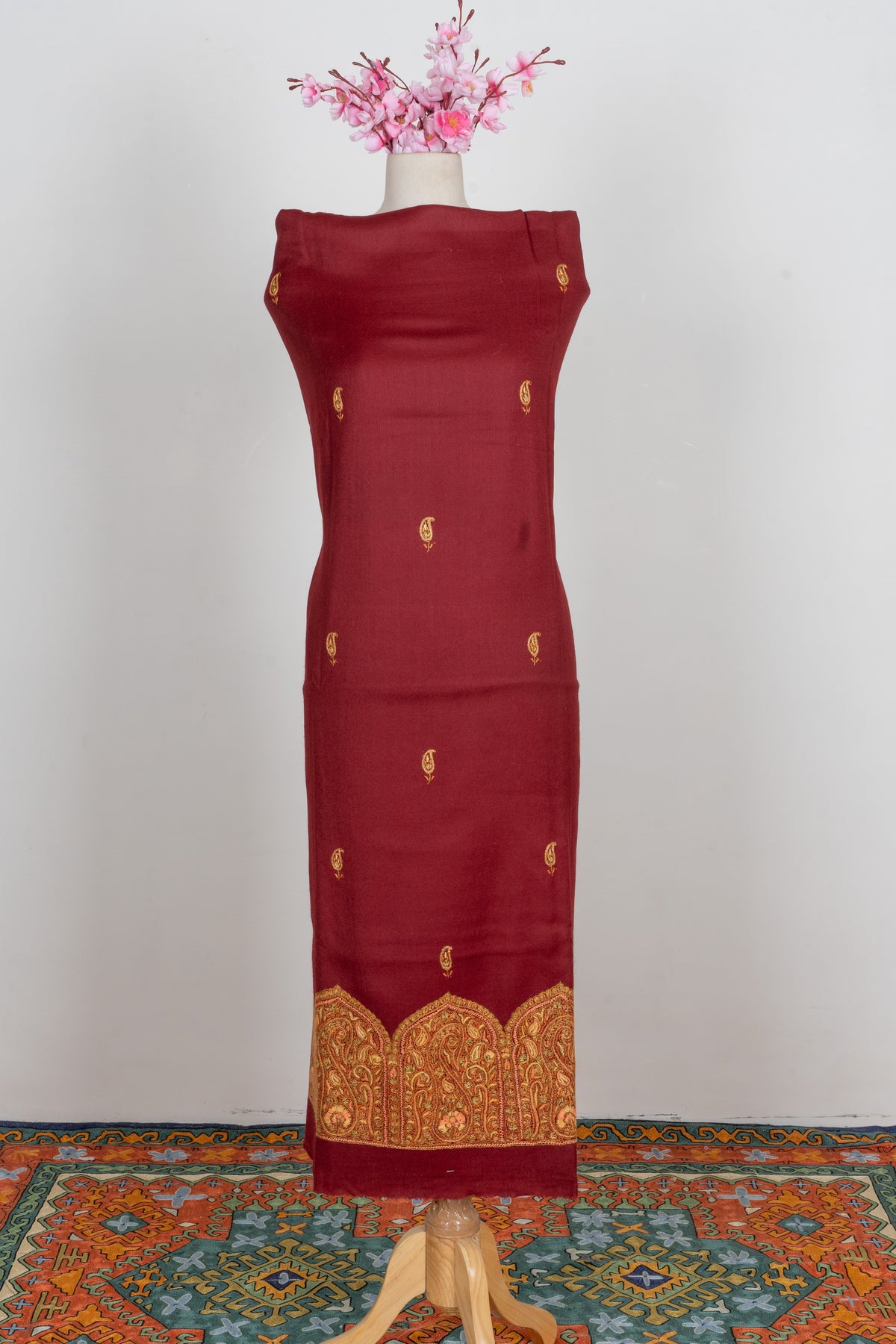 The deep red tone lends itself beautifully to traditional celebrations and evening wear, offering a statement look without overwhelming the senses. Paired with classic jewelry or contemporary accents, this wool blend suit stands as a refined expression of Kashmiri heritage reimagined for modern wardrobes.