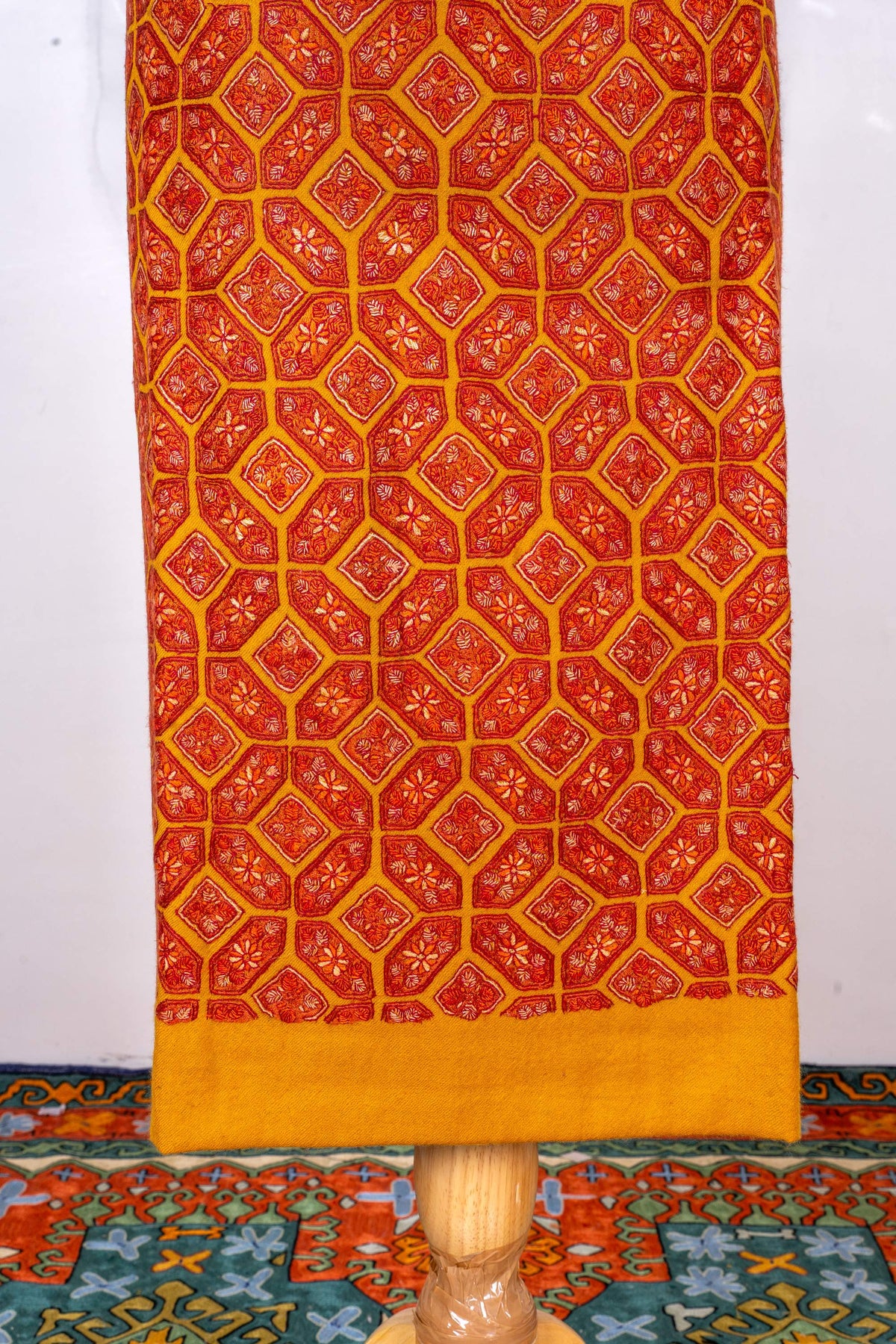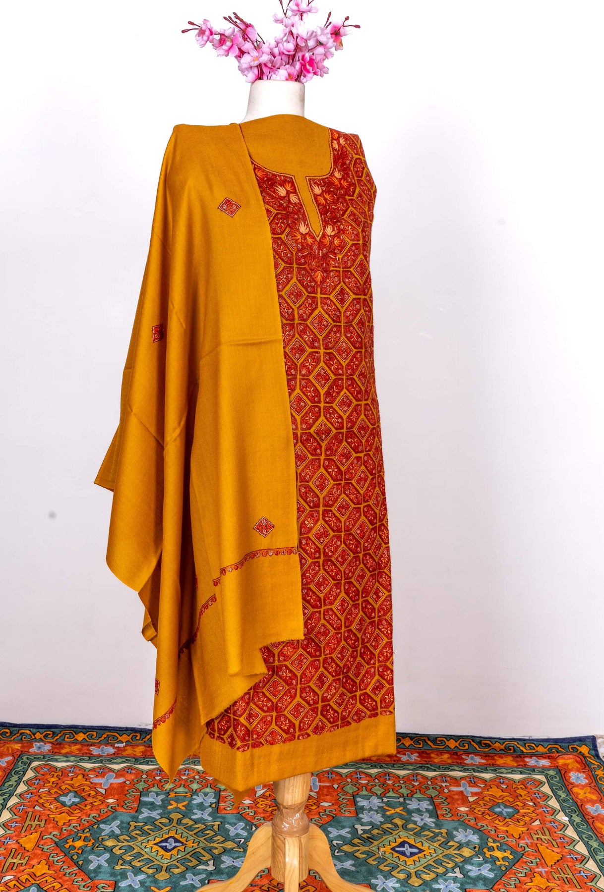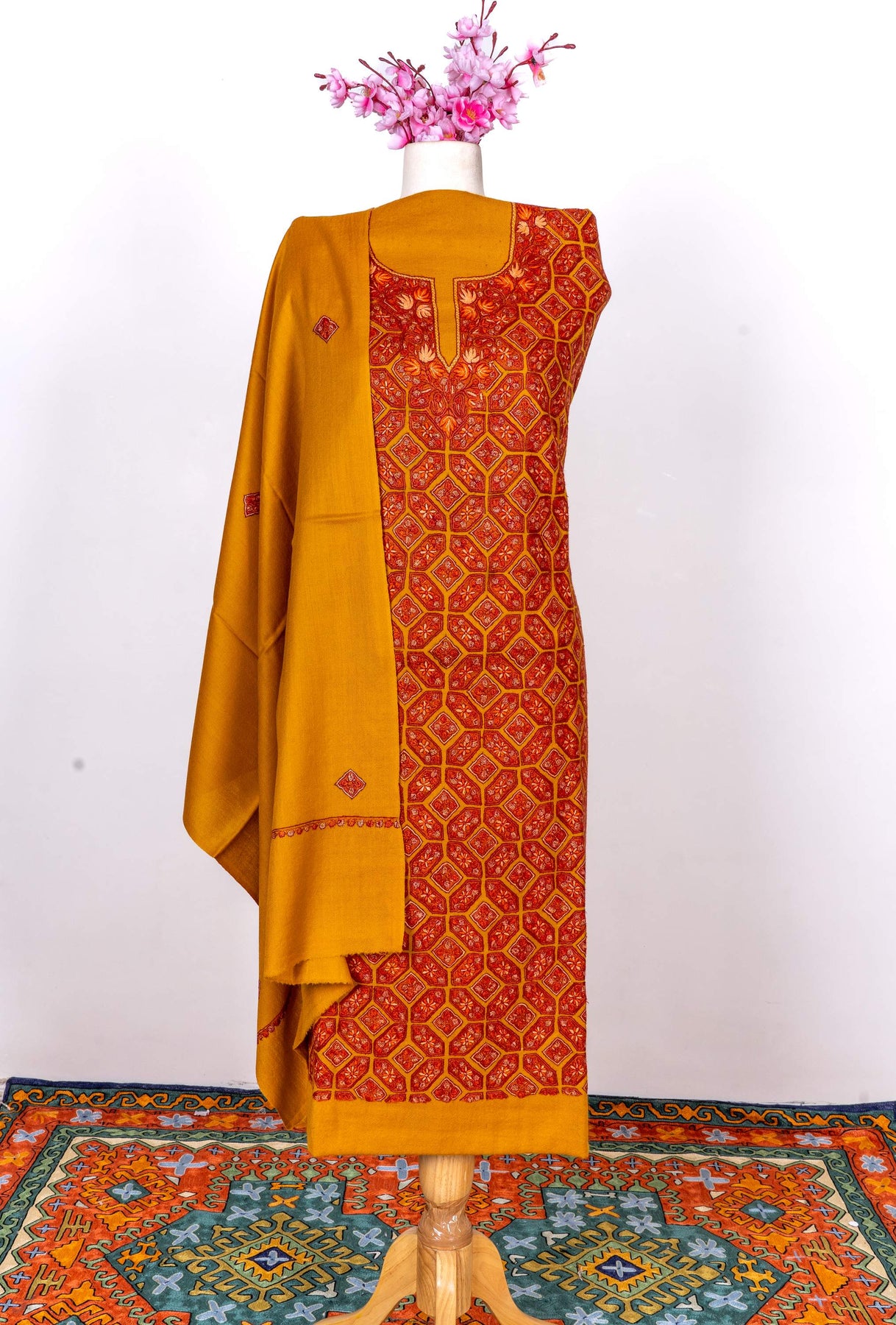 Marigold Mosaic Sozni Hand Embroidered Suit in Fine merino wool
