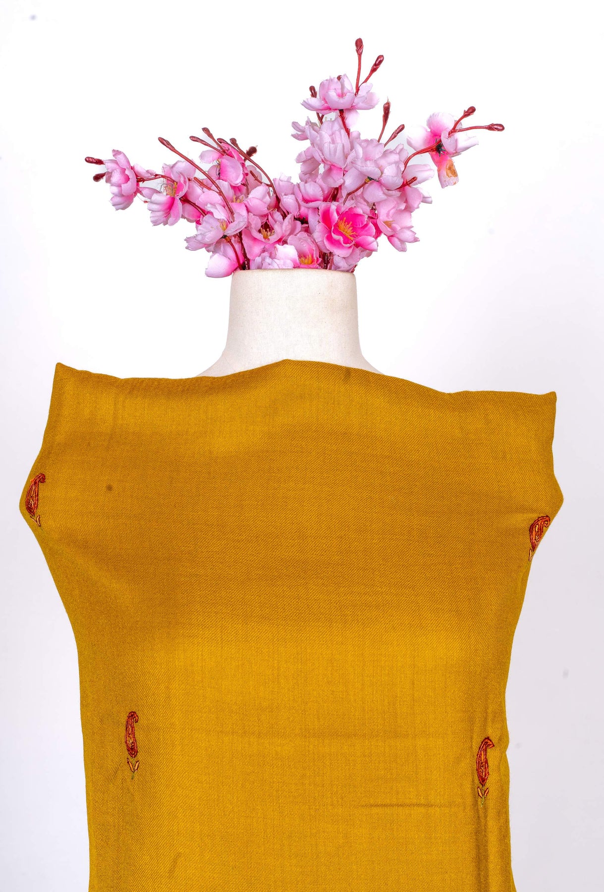 Saffron Gold Sozni Hand Embroidered Suit in Fine merino wool