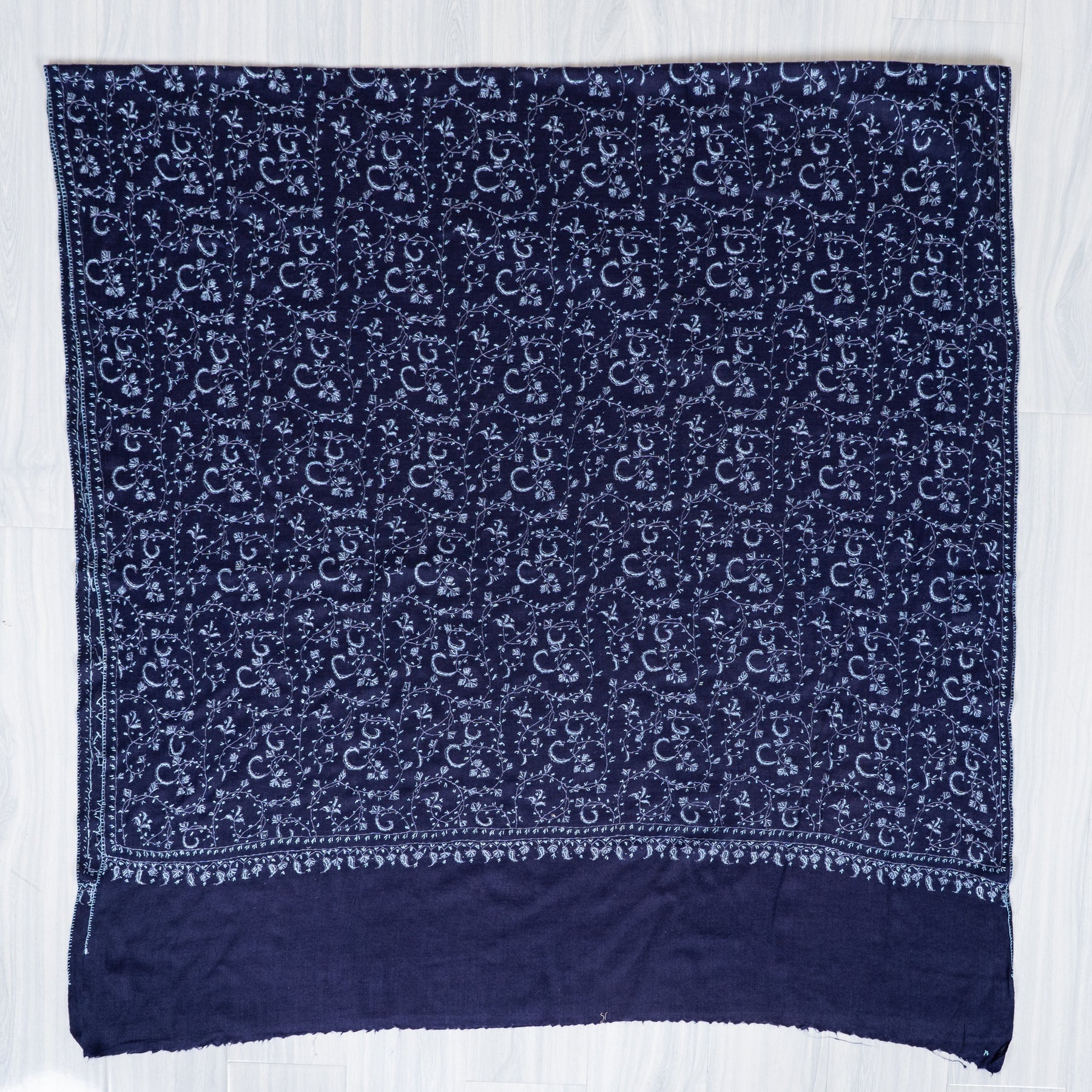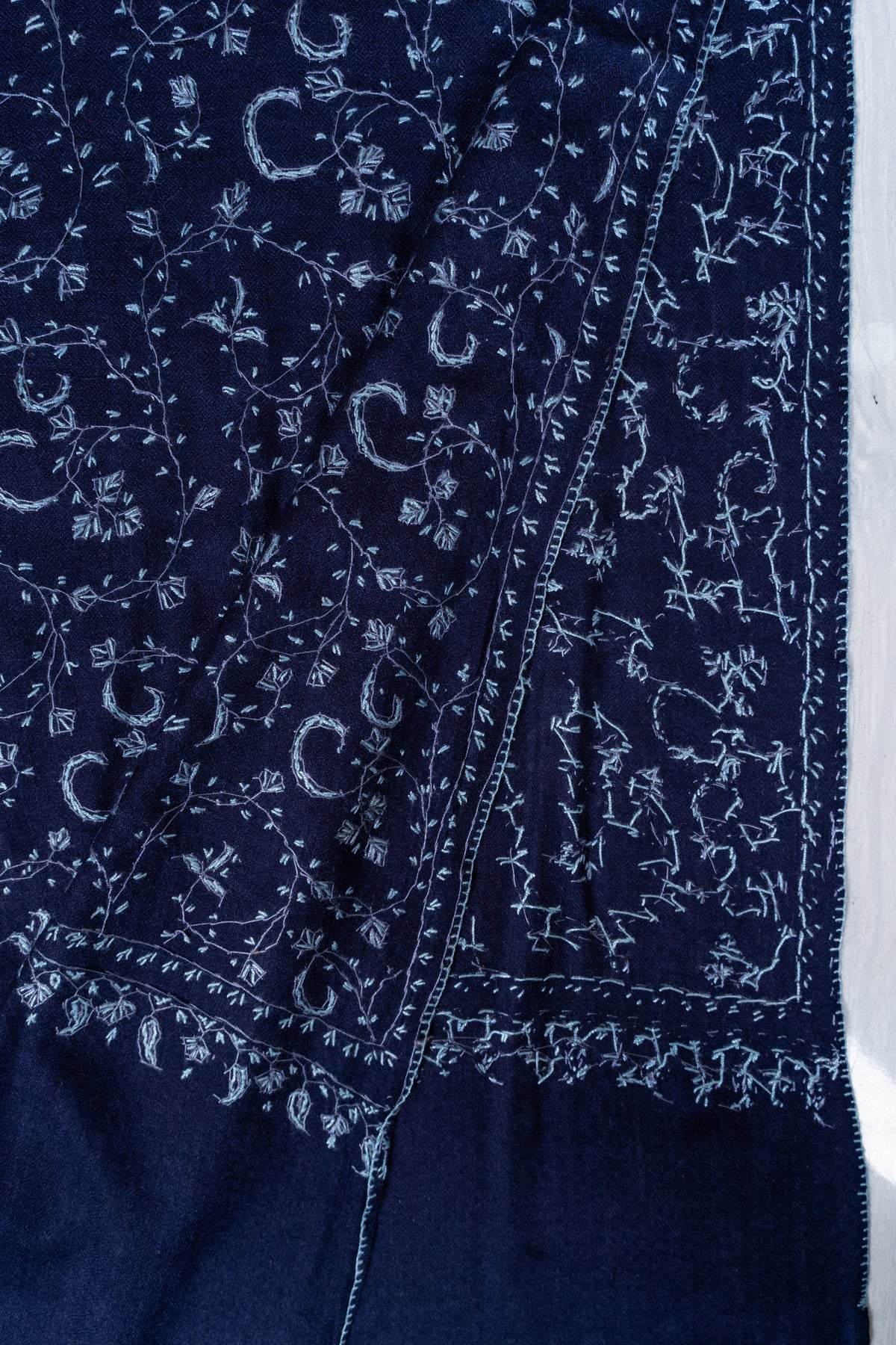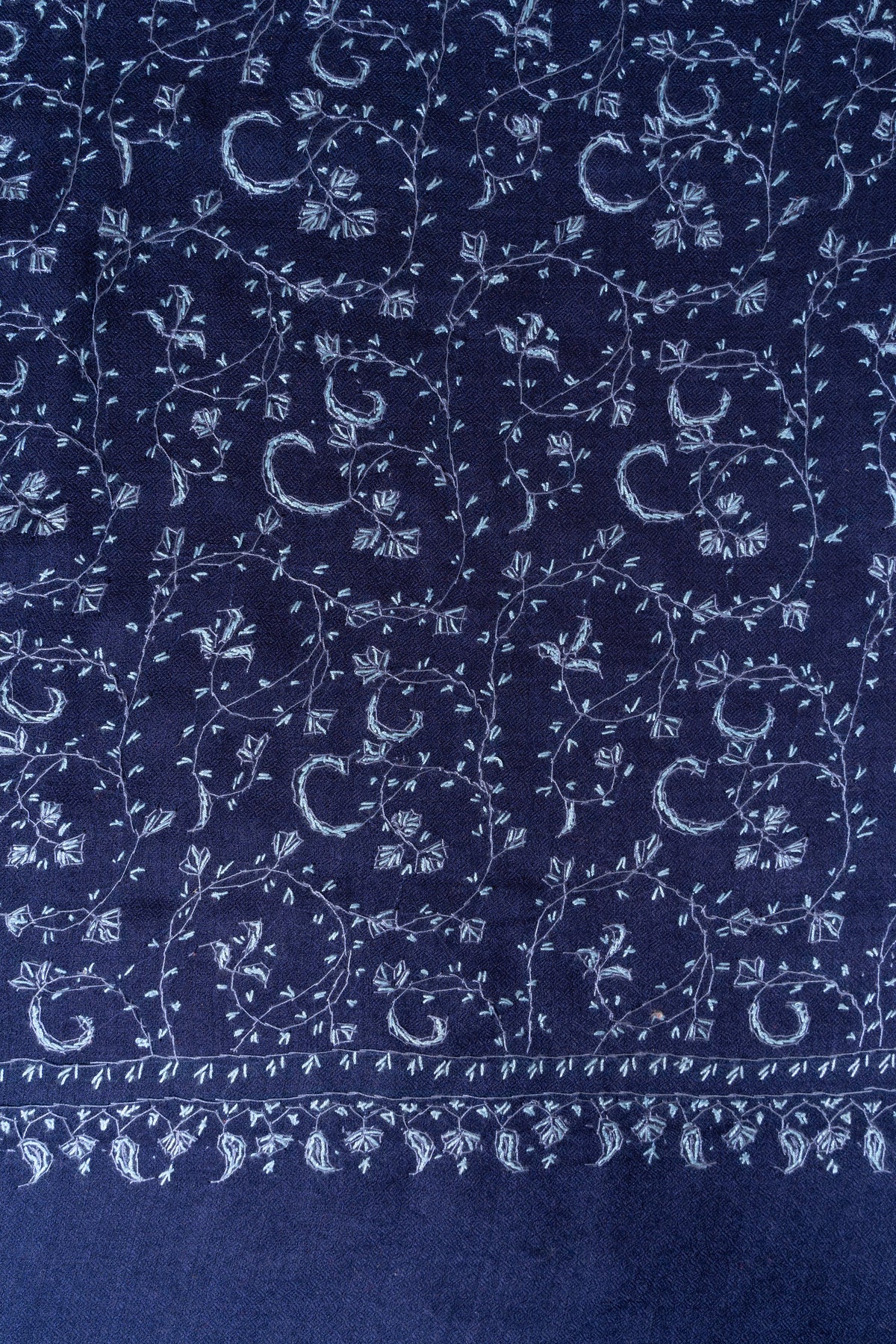 Royal Indigo Vine Weave: Merino Wool Hand Embroidered 2.5 Yards Shawl