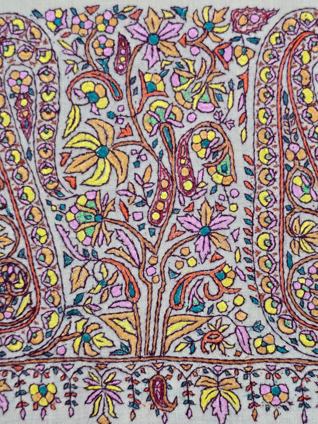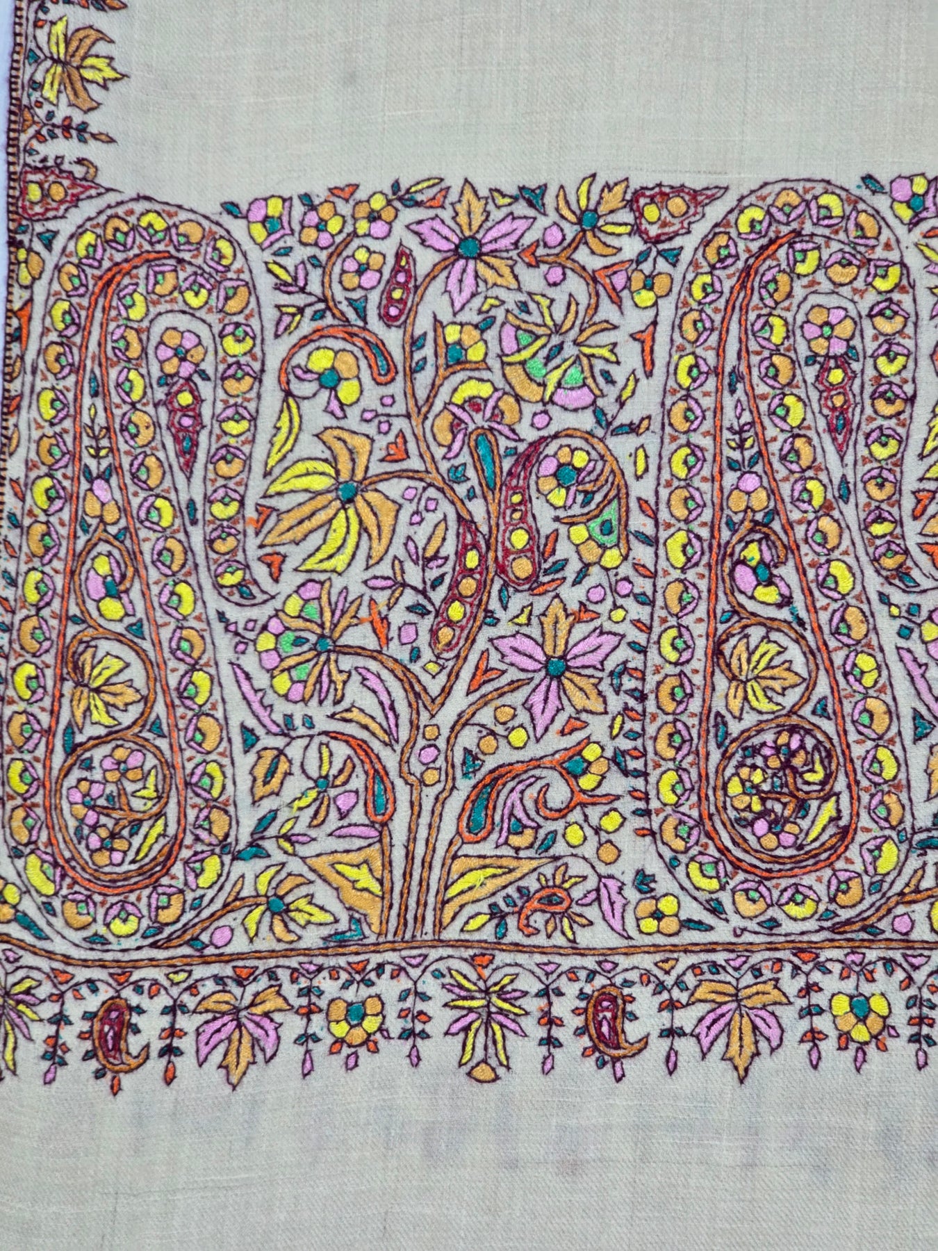 Meadow Paisley Grace: Hand Embroidered Pure Pashmina Shawl