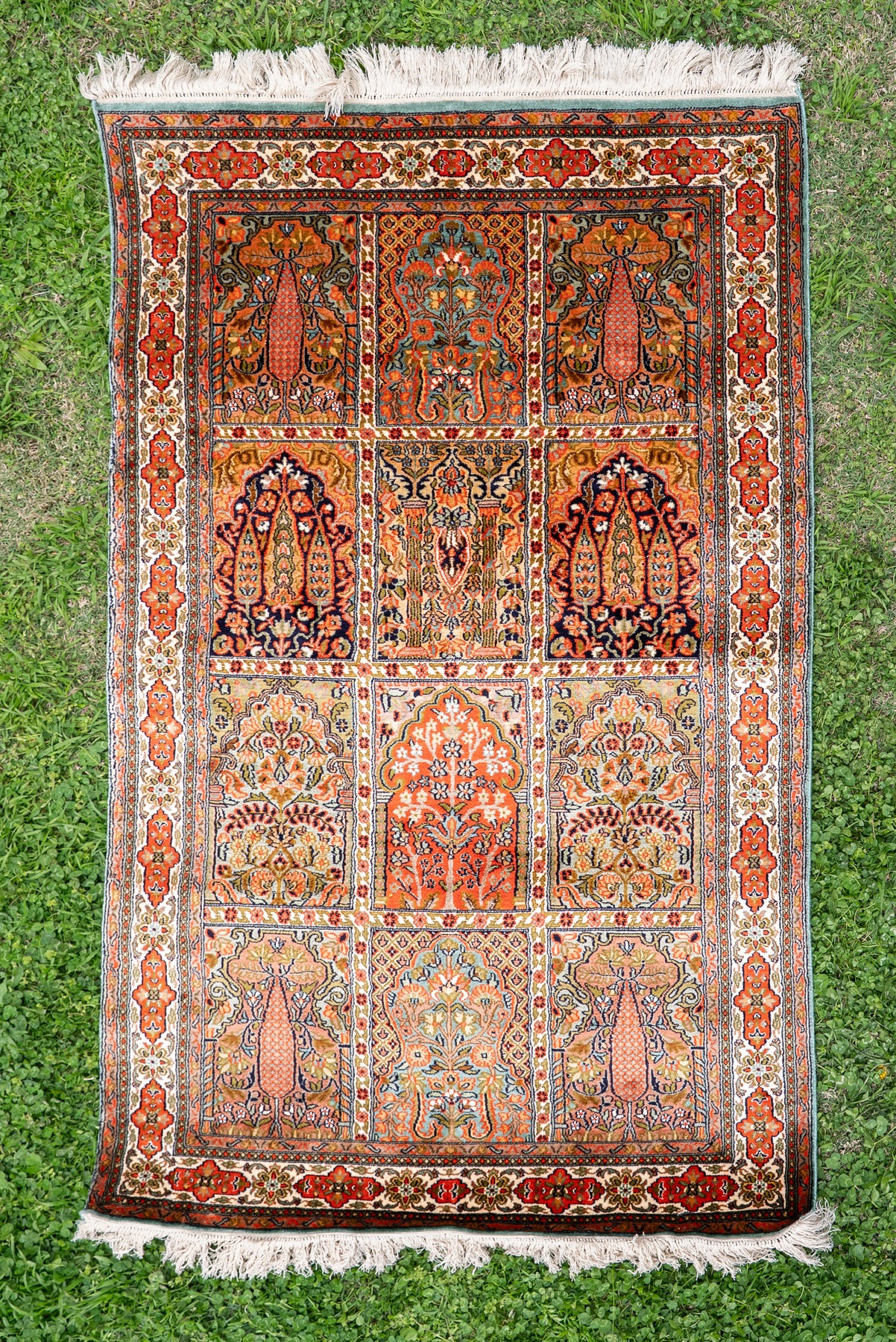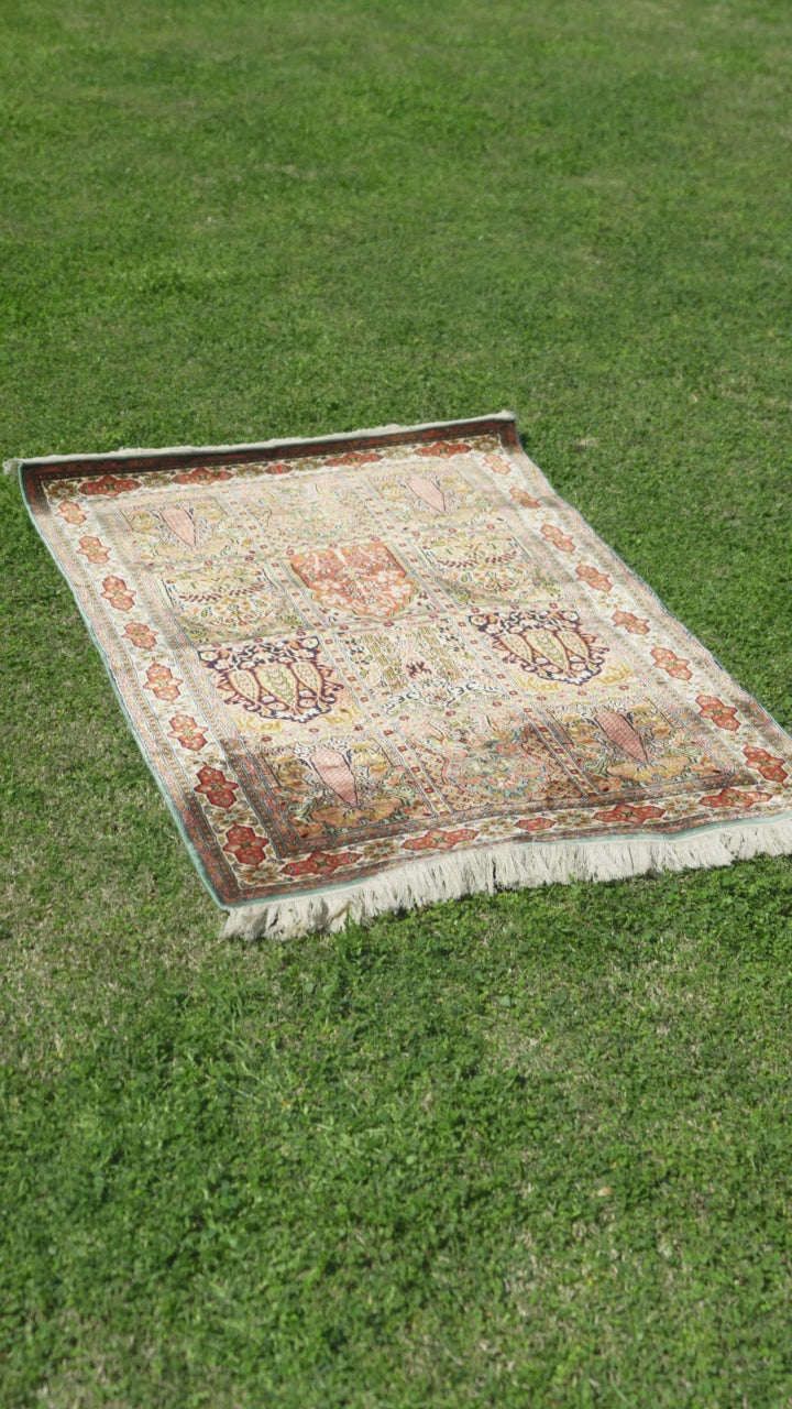 5ft x 3ft: Hand Knotted Mulberry silk on silk Kashmiri Carpet