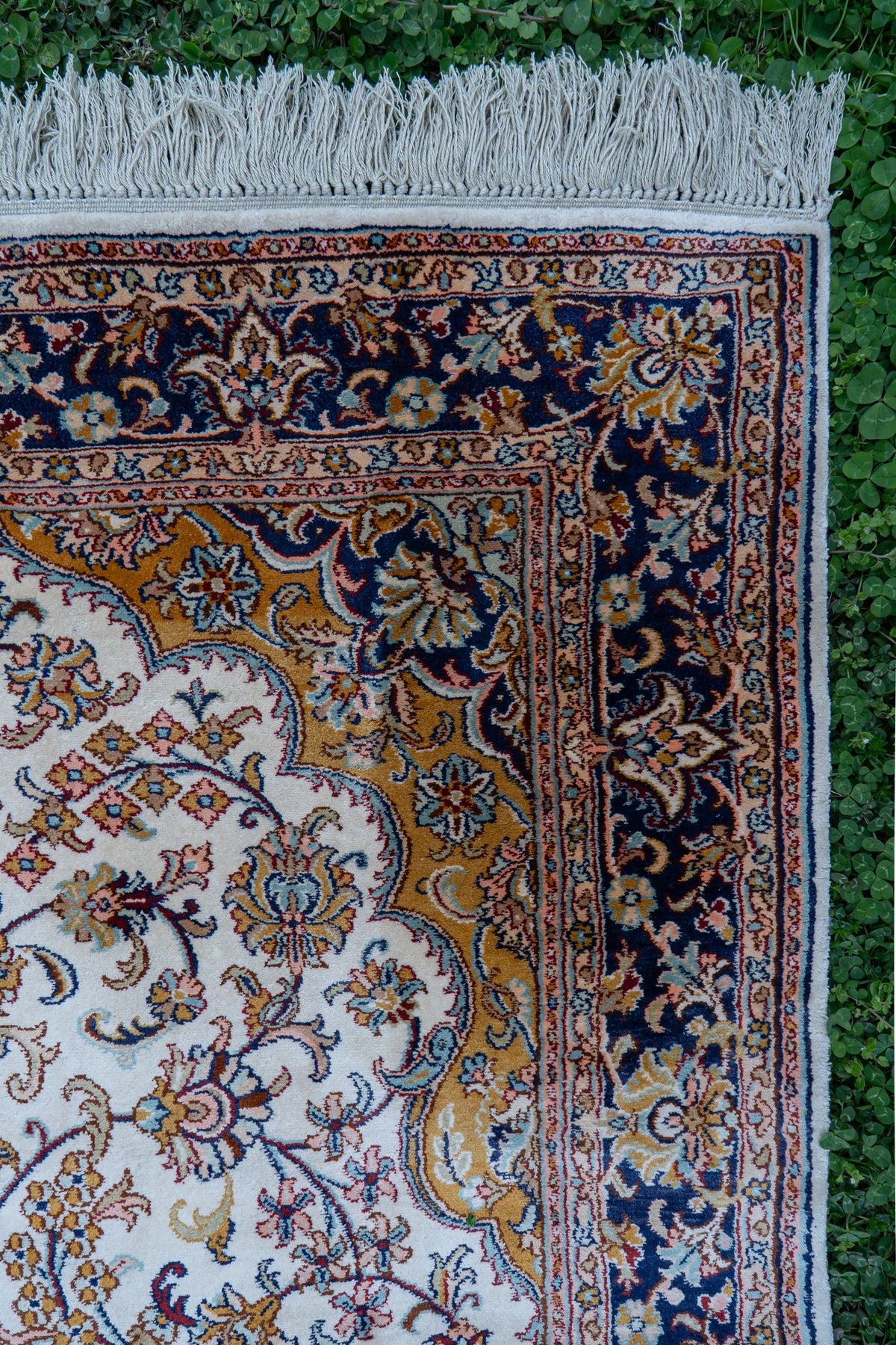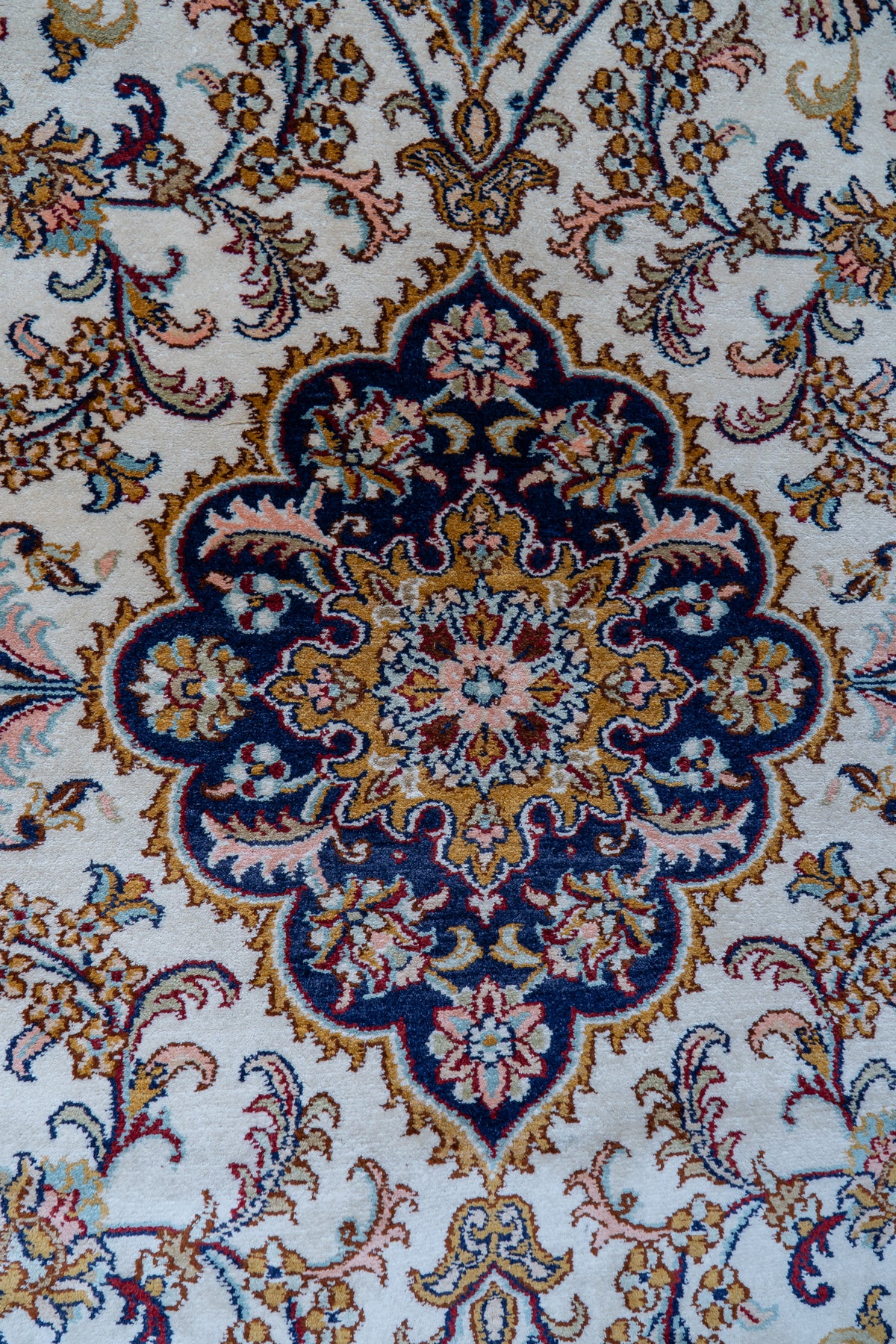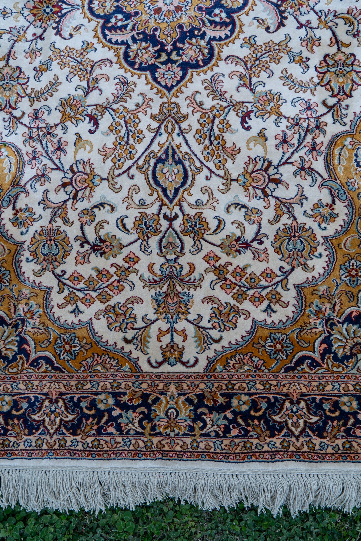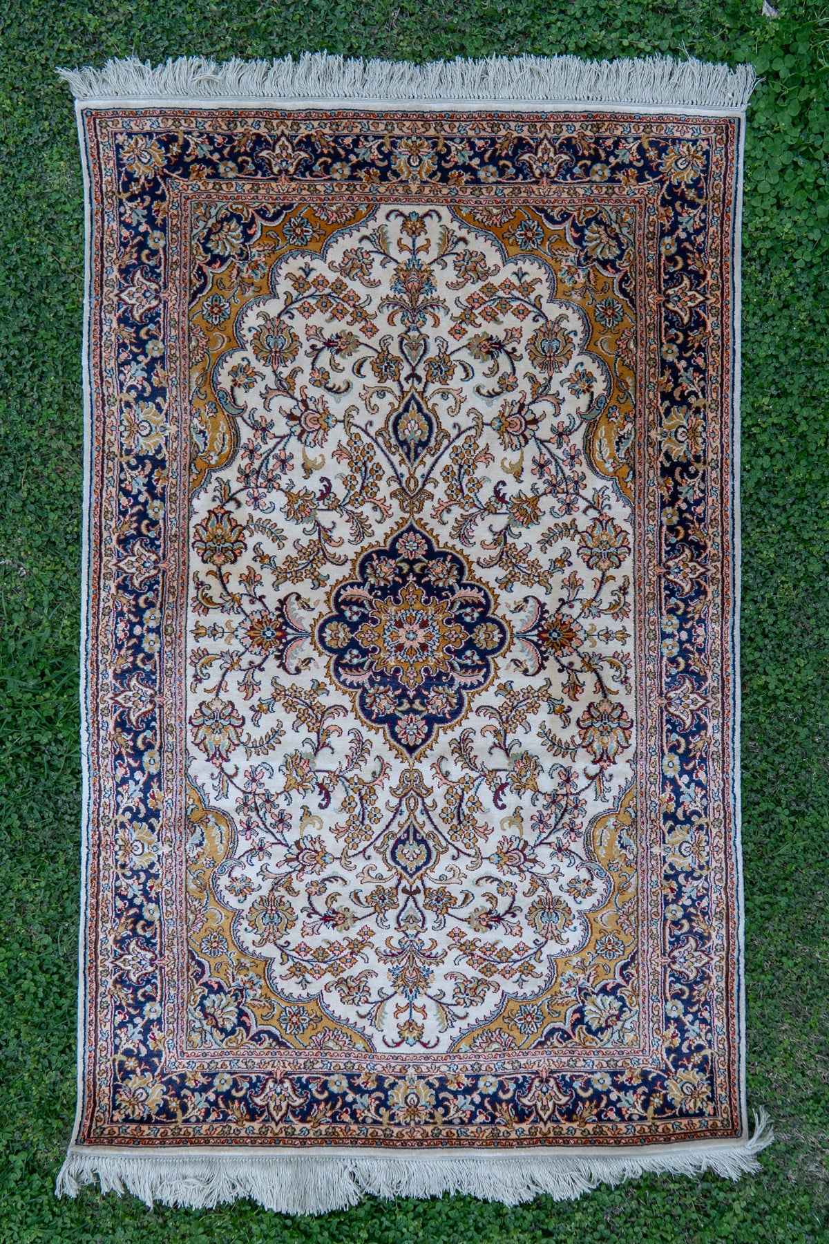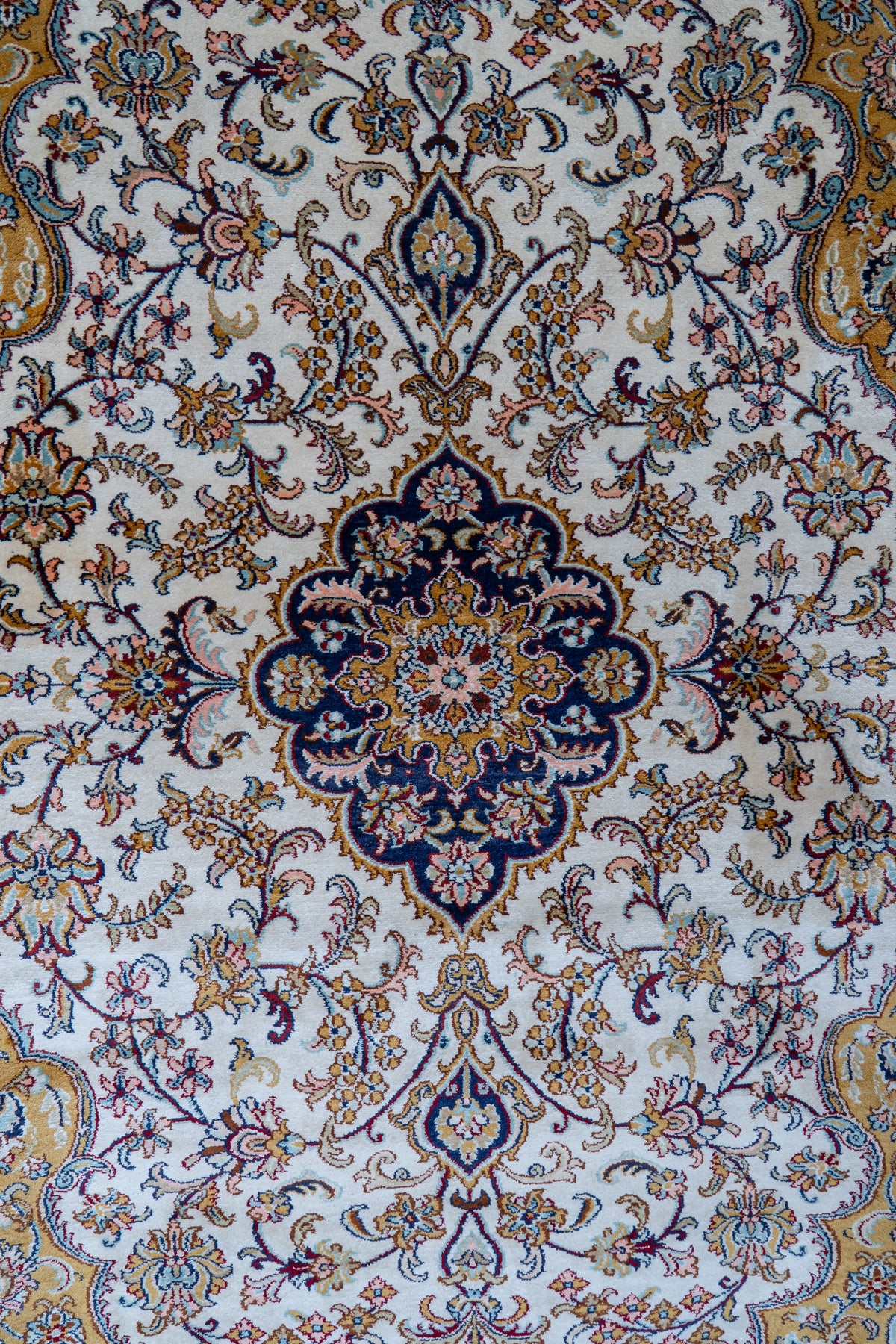 To guarantee authenticity, every Pure silk on silk carpet is accompanied by a Geographical Indication (GI) Certificate, issued by the Government of India. This certificate confirms that this carpet is a 100% Pure silk carpet and is Hand-knotted, and Hand-Crafted by local Artisans in Kashmir valley.