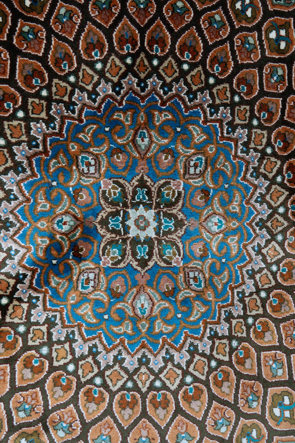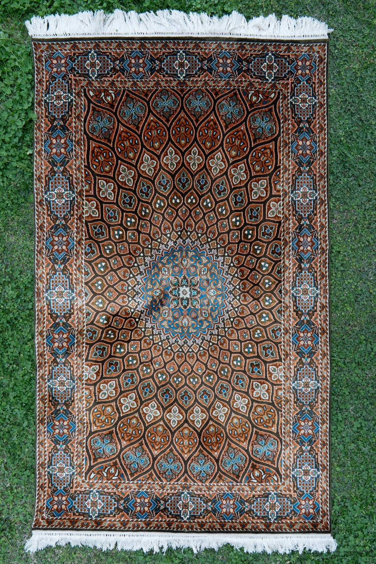 5ft x 3ft: Azure Mosaic Medallion: Hand Knotted Mulberry silk on silk Kashmiri Carpet