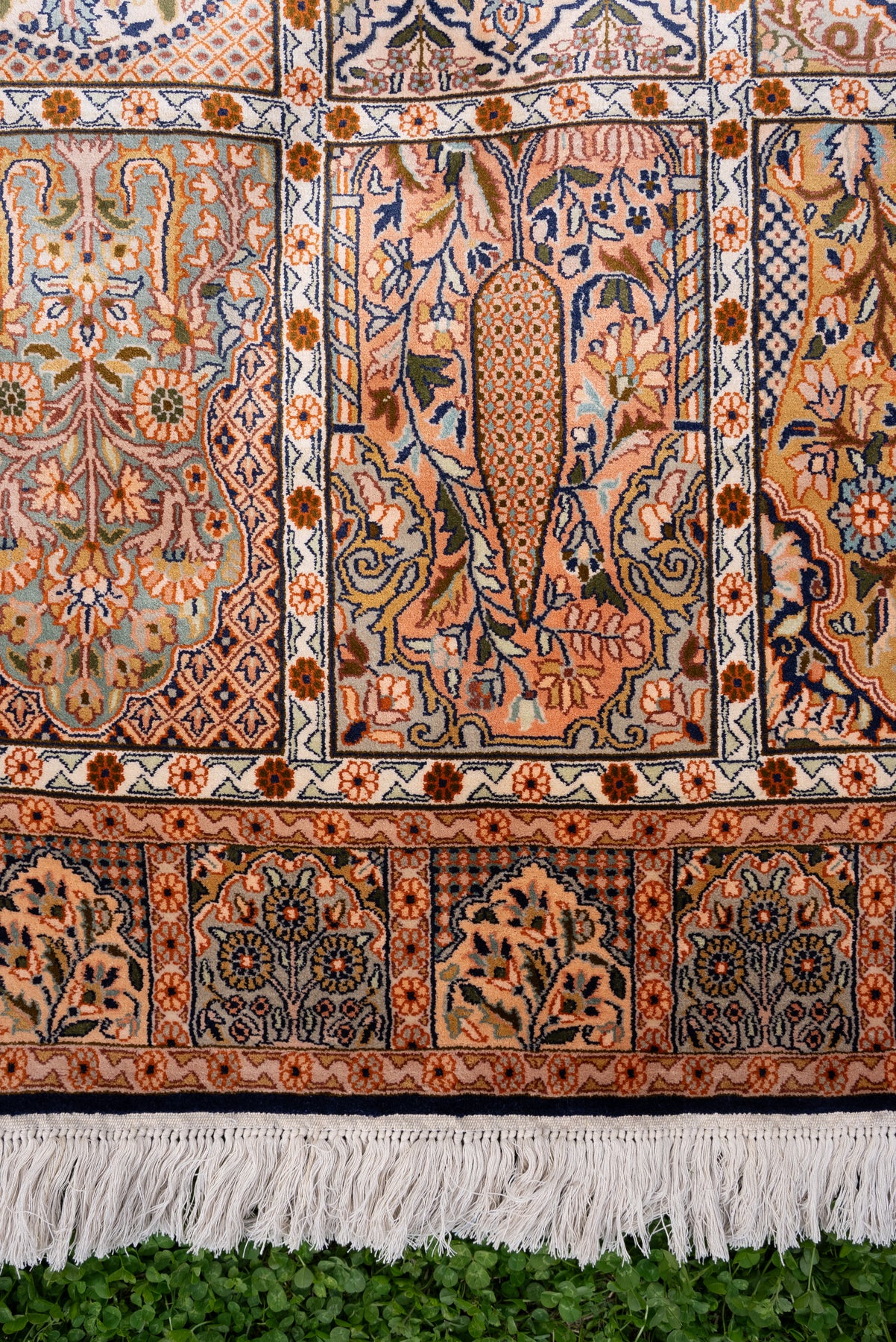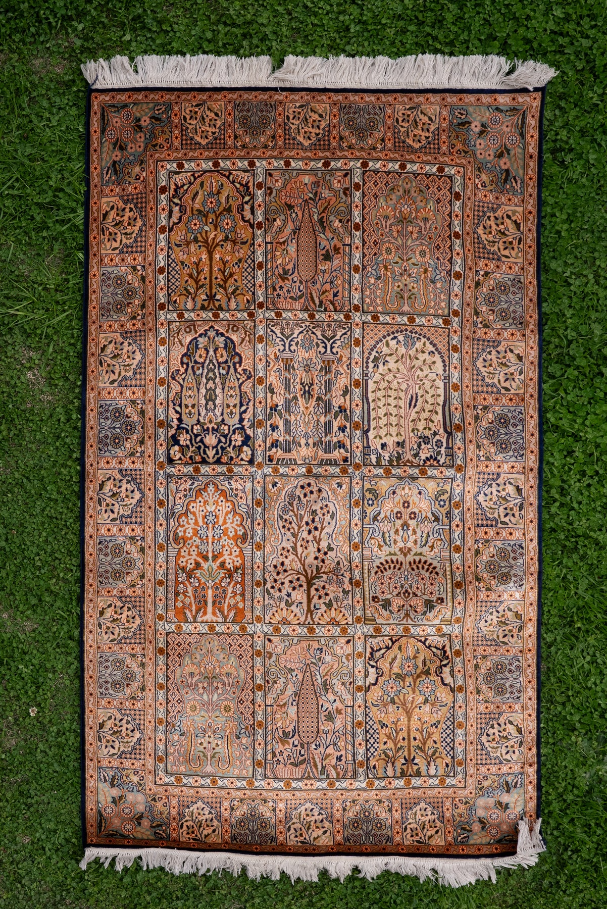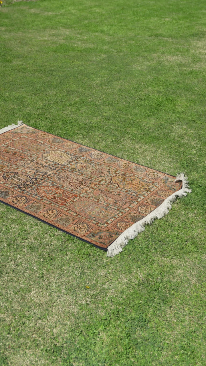 2.5ft x 4ft Classic Garden Panel Tapestry: Hand Knotted Mulberry silk on silk Kashmiri Carpet