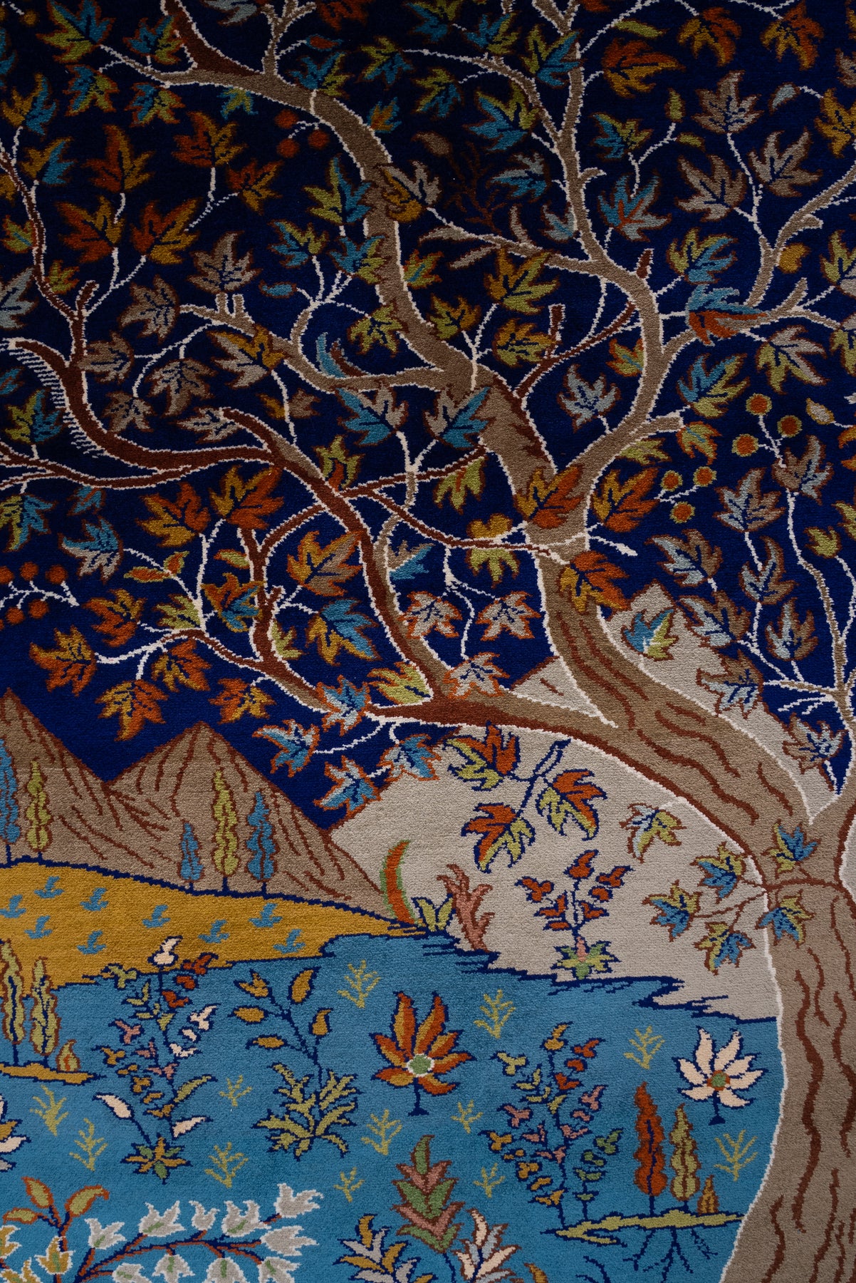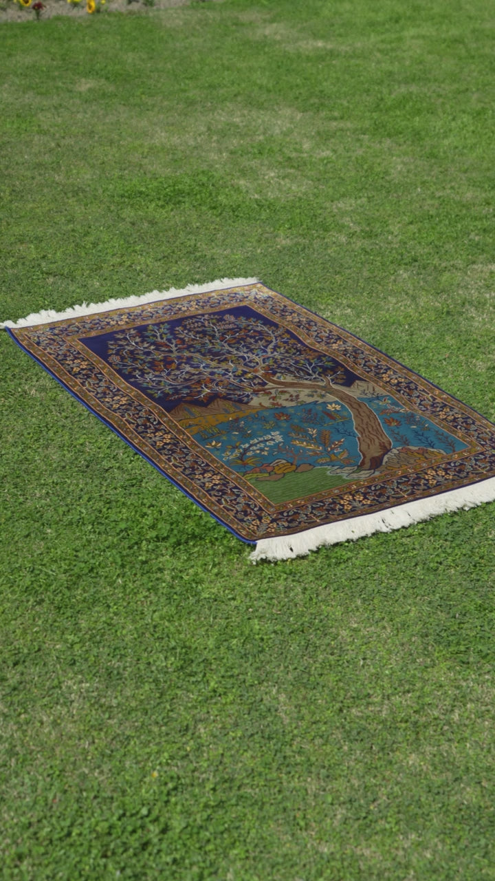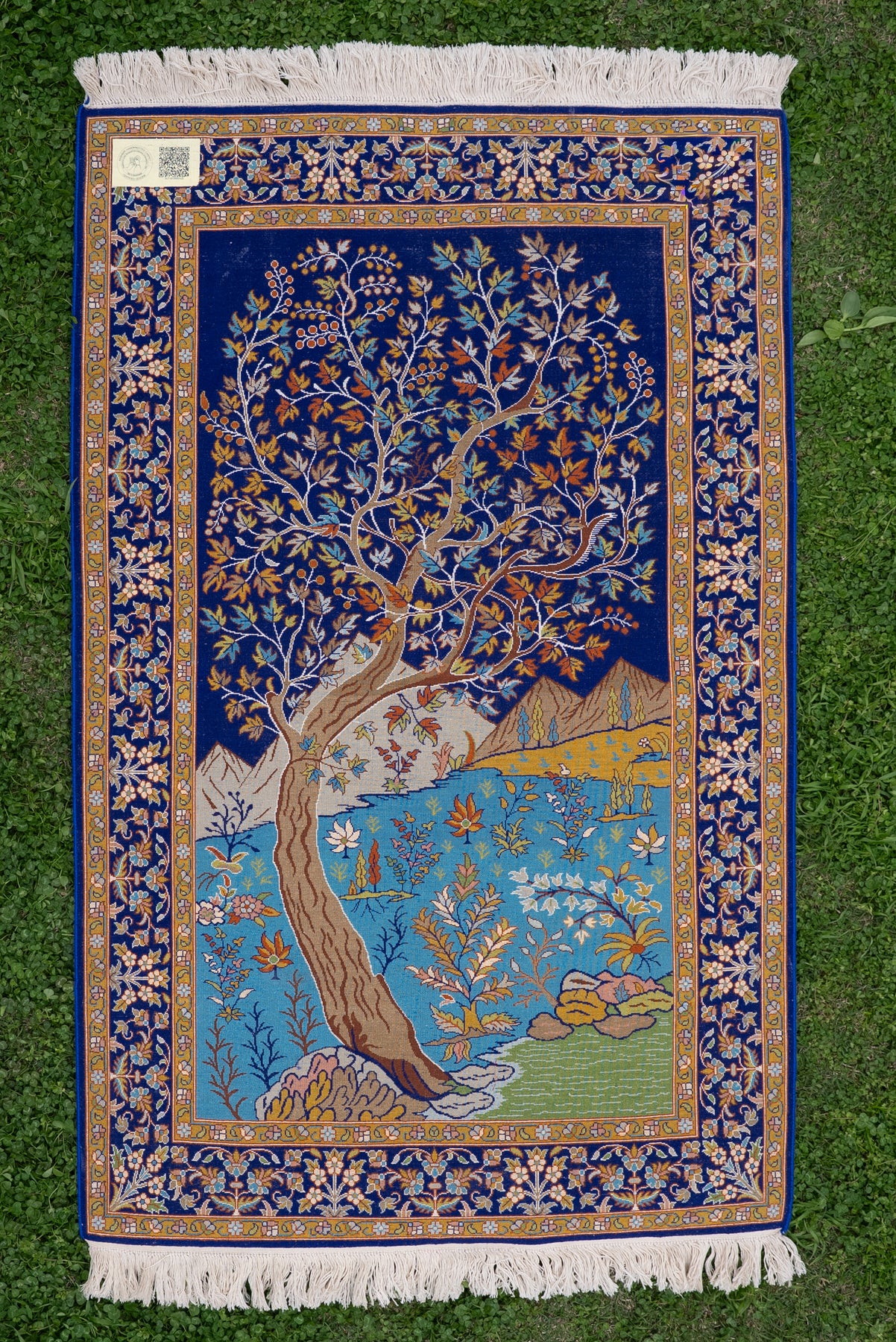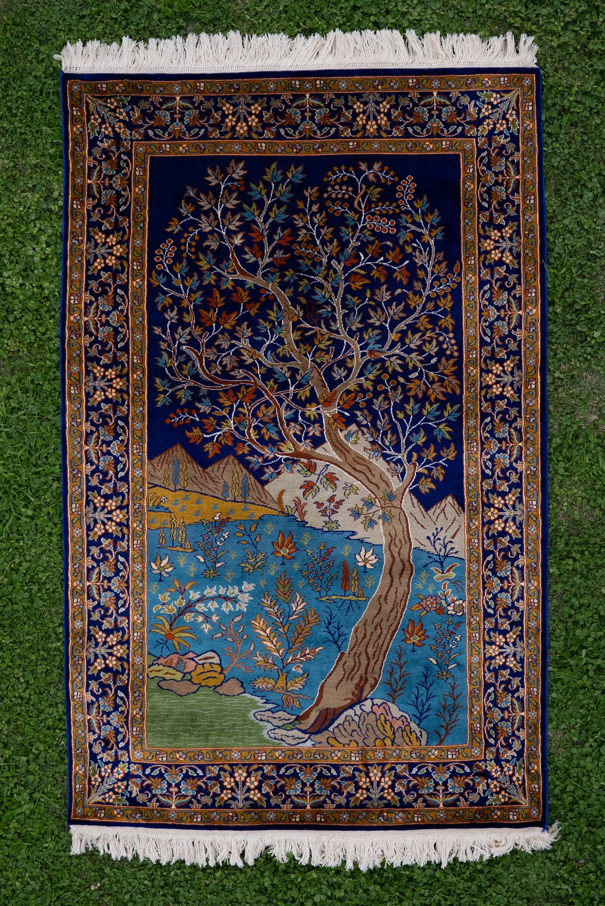 5ft x 3ft Enchanted Tree of Life: Hand Knotted Mulberry silk on silk Kashmiri Carpet