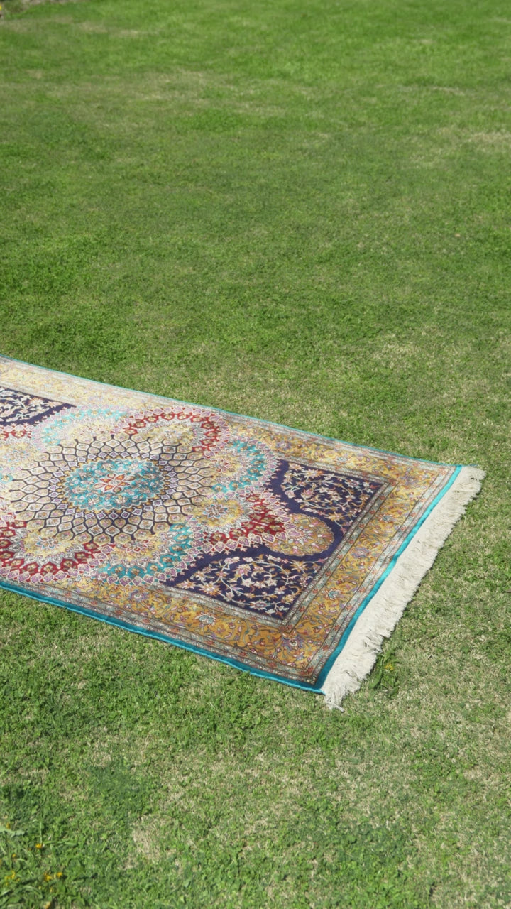 The opulence of our KashmKari Silk Carpets is defined by the term Silk on Silk. This signifies that both the foundation and the pile of the carpet are made from pure silk, embodying Kashmiri grandeur and artisanal precision. As a result, our carpets radiate an unparalleled sheen, soft texture, and luxurious finish.